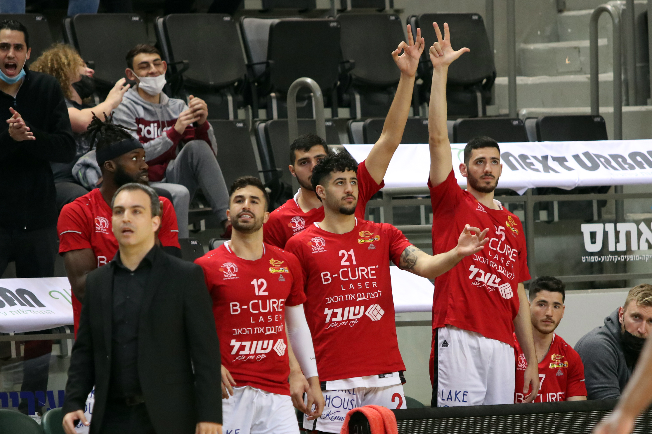 הספסל האדום חוגג אחרי עוד שלשה (צילום: לילך וייס)