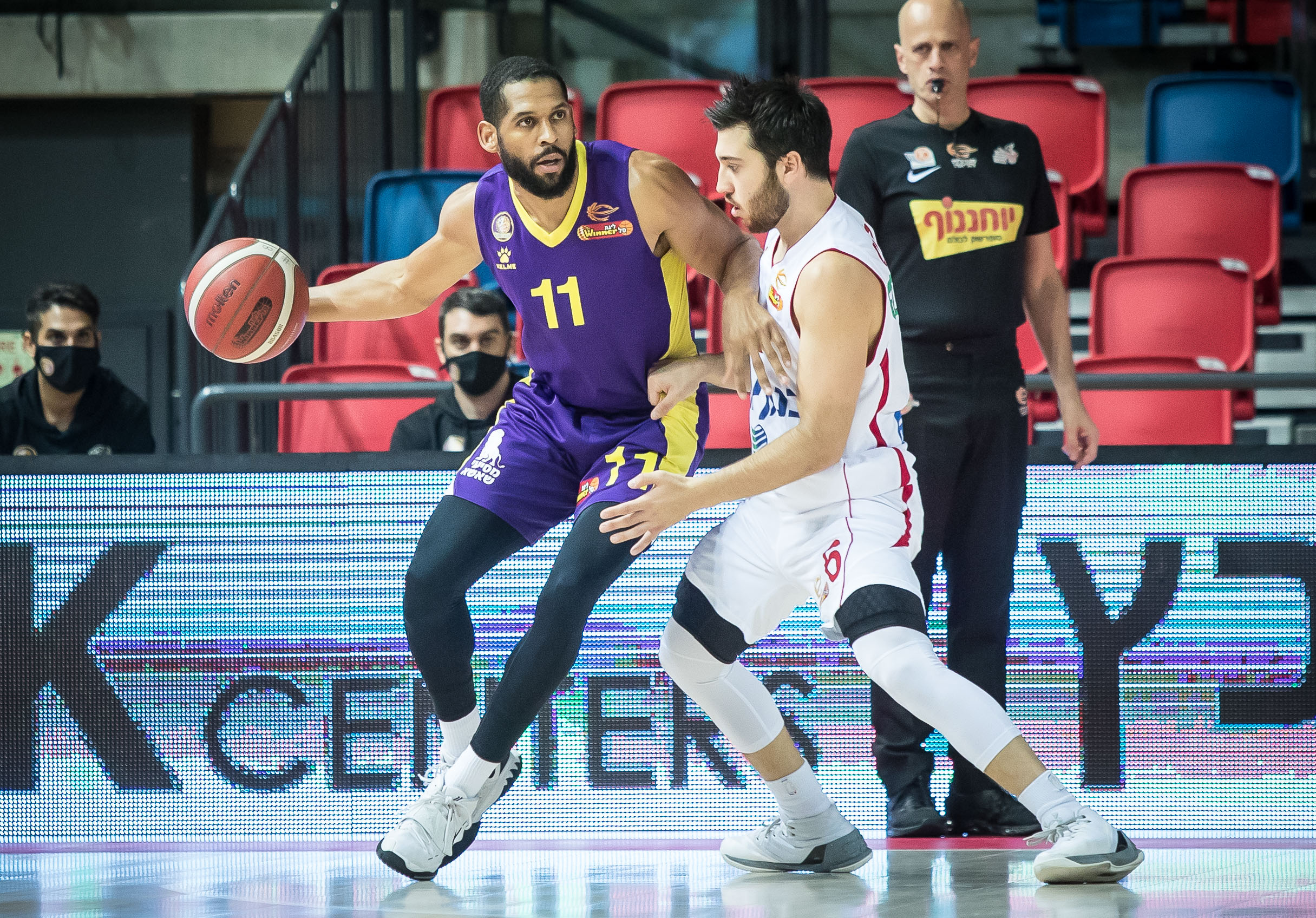 האריס עובד עם הגב לסל מול בלאט (צילום: עודד קרני)