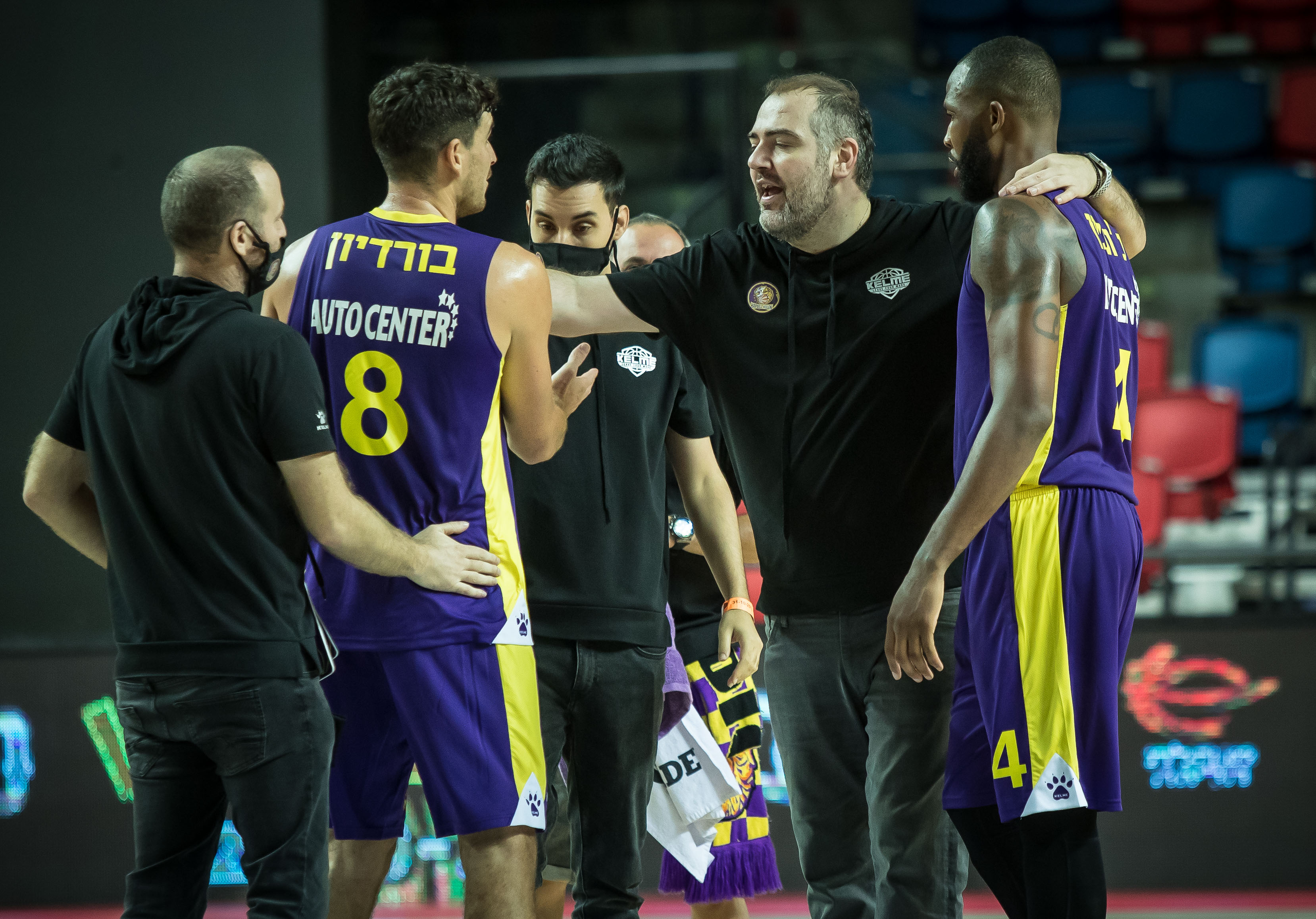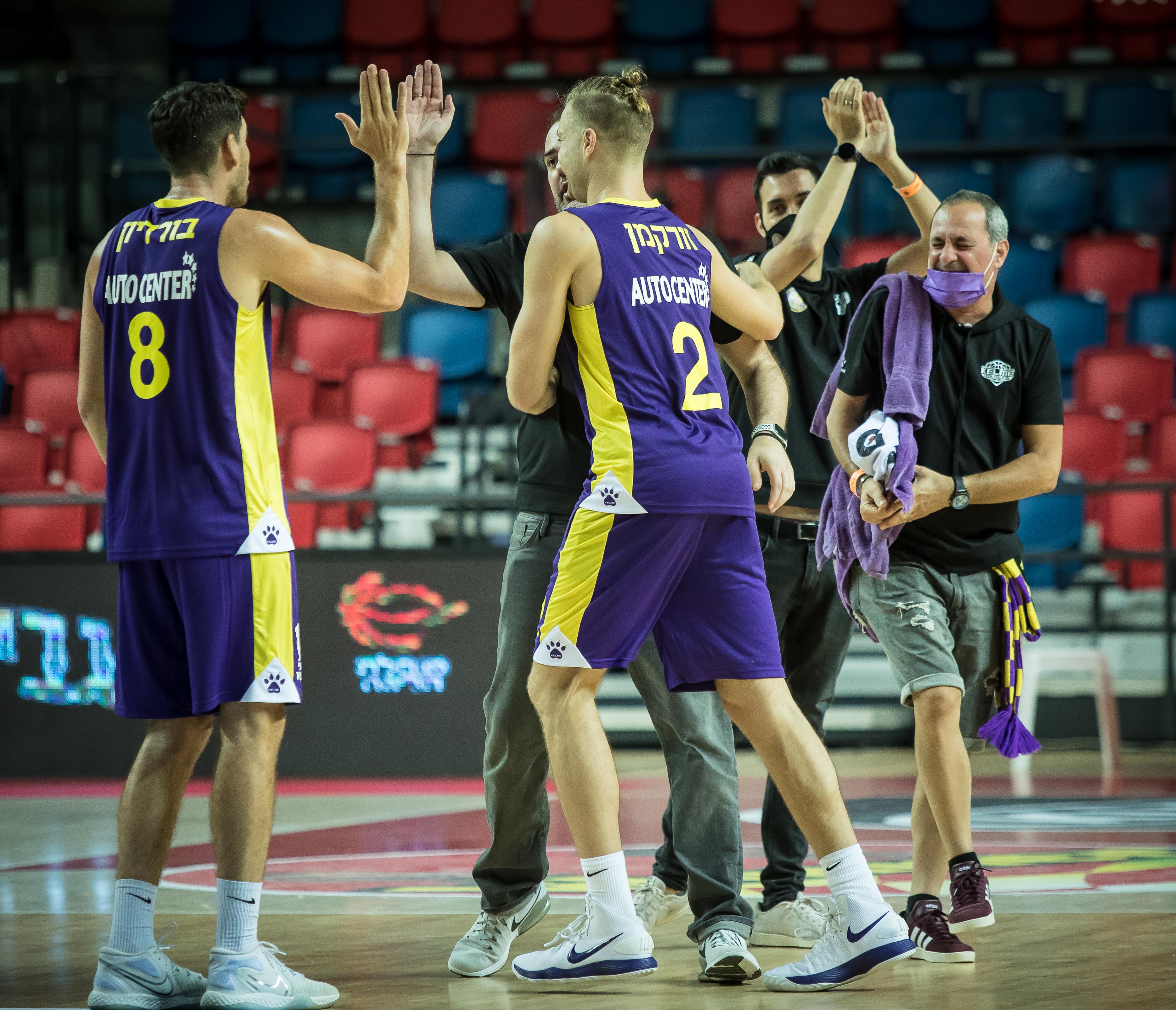 דדאס מחבק את ג'ונסון והרכש החדש בורדיון (צילום: עודד קרני)