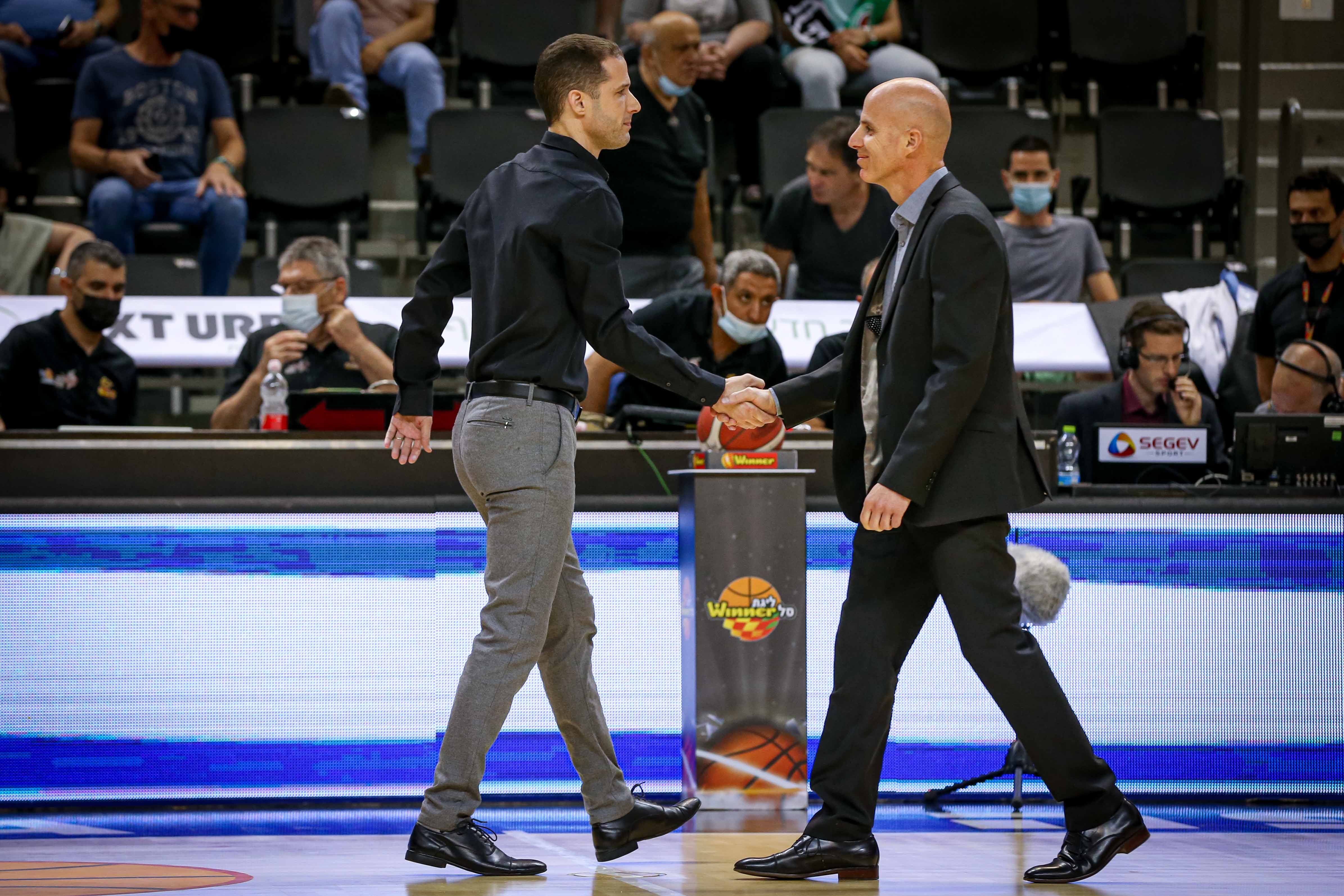 פרנקו ובן דוד לוחצים ידיים לפני המשחק (צילום: מאור אלקסלסי)