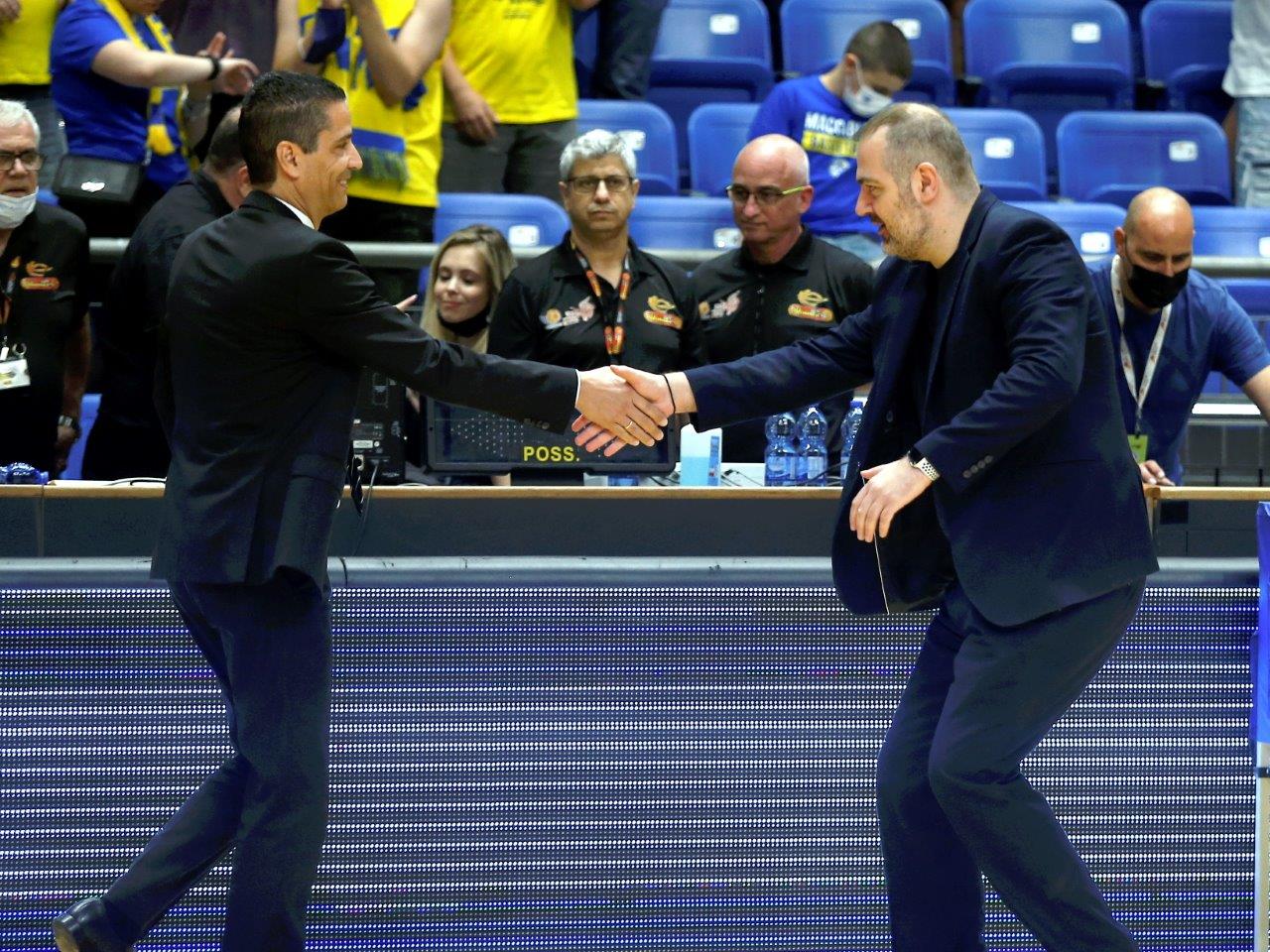 דדאס וספרופולוס לוחצים ידיים. דרבי יווני על הקווים (צילום: אלן שיבר)
