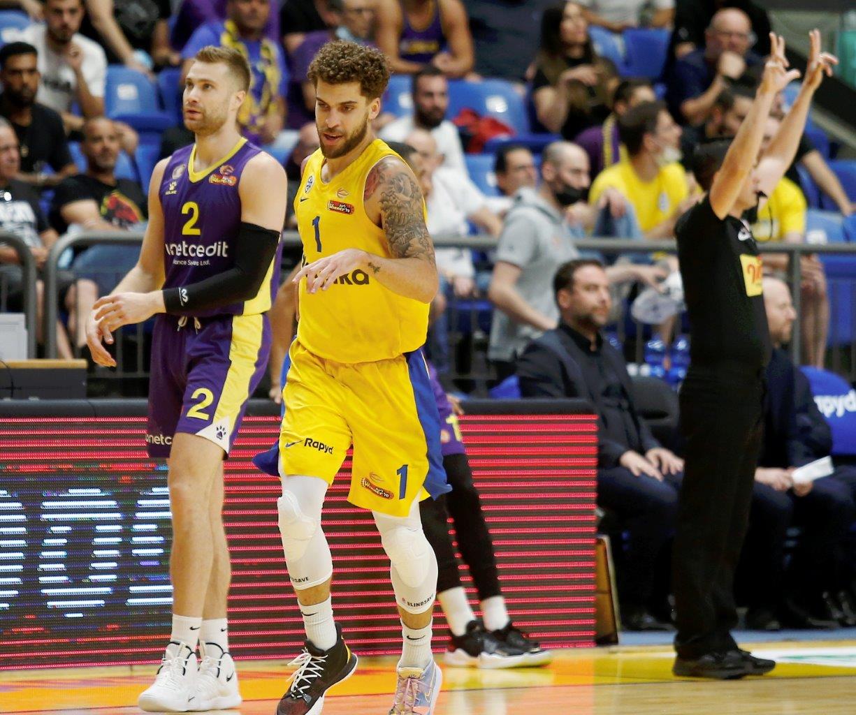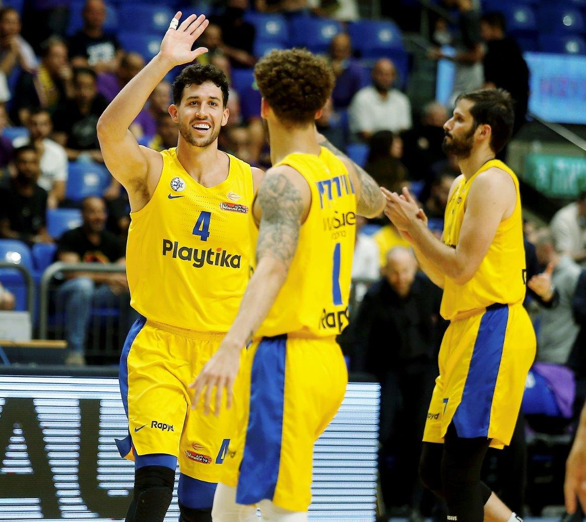 מכבי "Playtika" ת"א: ז'יז'יץ' 15 (5-6 מהשדה, 5-7 מהקו, 15 דקות), קלויארו 14 (6-10 מהשדה), ווילבקין (3-8 לשלוש, 4 אסיסטים, 4 איבודים) ובנדר (3-4 לשתיים, 1-4 לשלוש) 13 כ"א, בלייזר (3-4 מהשדה) וכספי (4-7 מהשדה, 6 ריבאונדים, 5 אסיסטים) 8 כ"א, ג'ונס 7, זוסמן 6, דיברתולומיאו 2. כן שותפו: קליין, כהן וסהר.