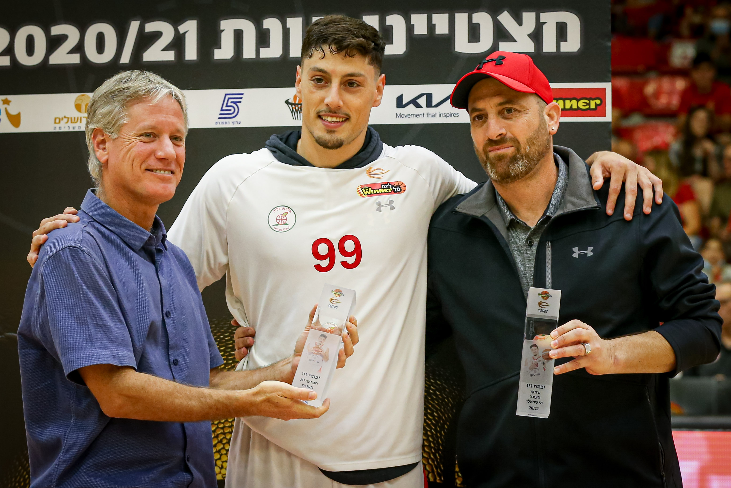 זיו מקבל את הגביעים מראש המועצה נור ויו"ר הקבוצה פרטי (צילום: מאור אלקסלסי)