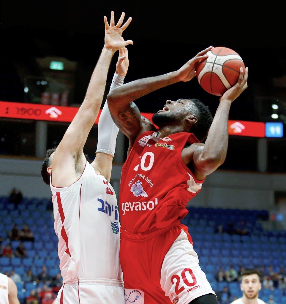 תומאסון מנסה לקלוע מעל ששון (צילום: אלן שיבר)