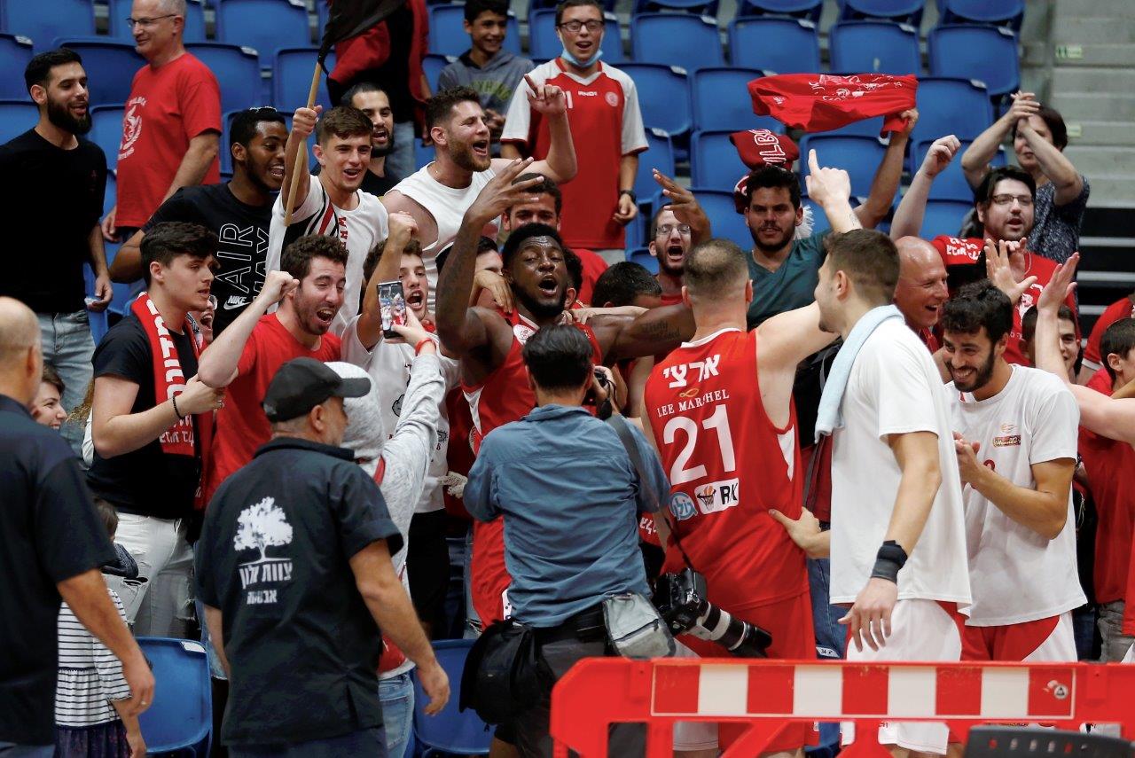 שחקני גלבוע/גליל חוגגים עם הקהל מהצפון (צילום: אלן שיבר)