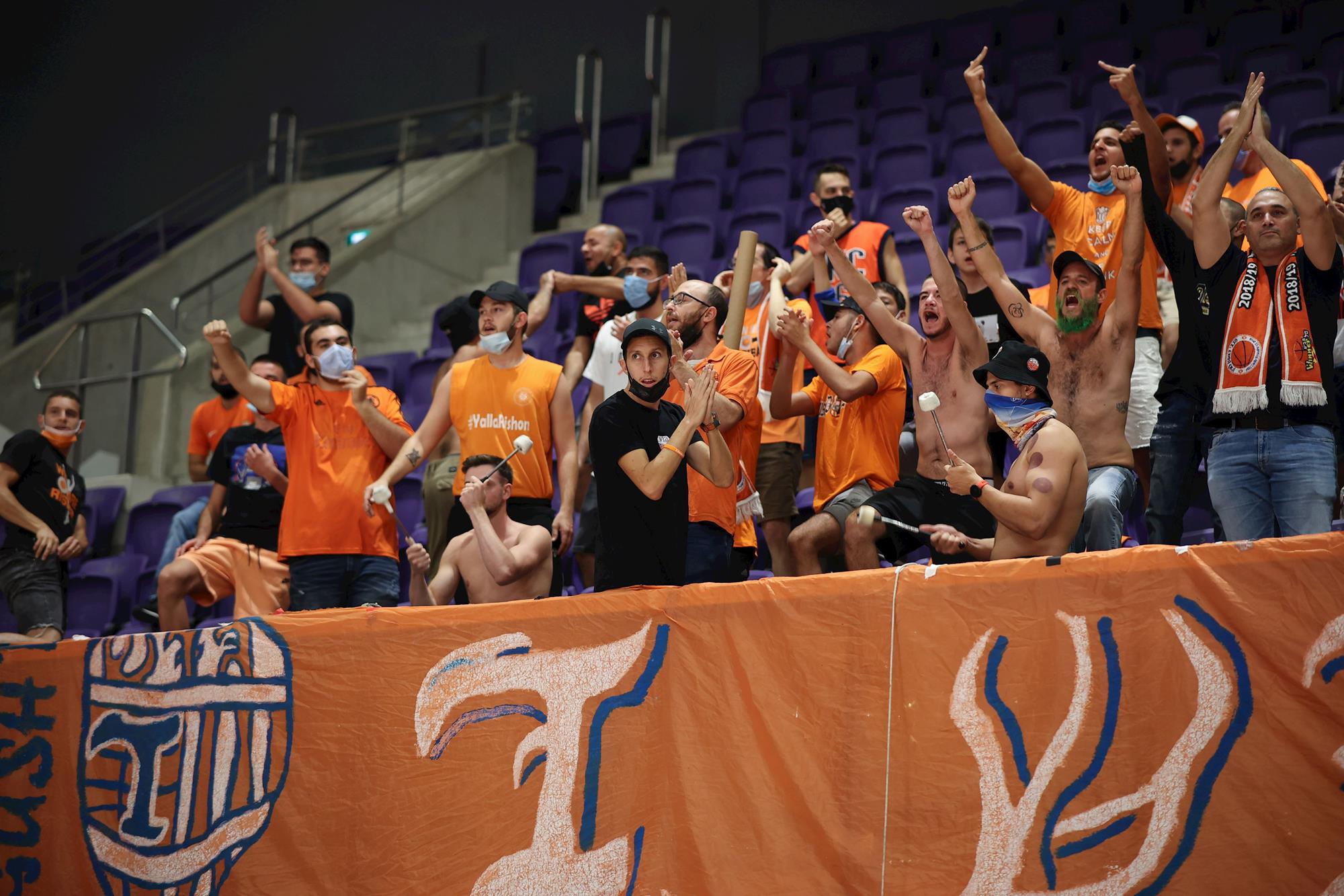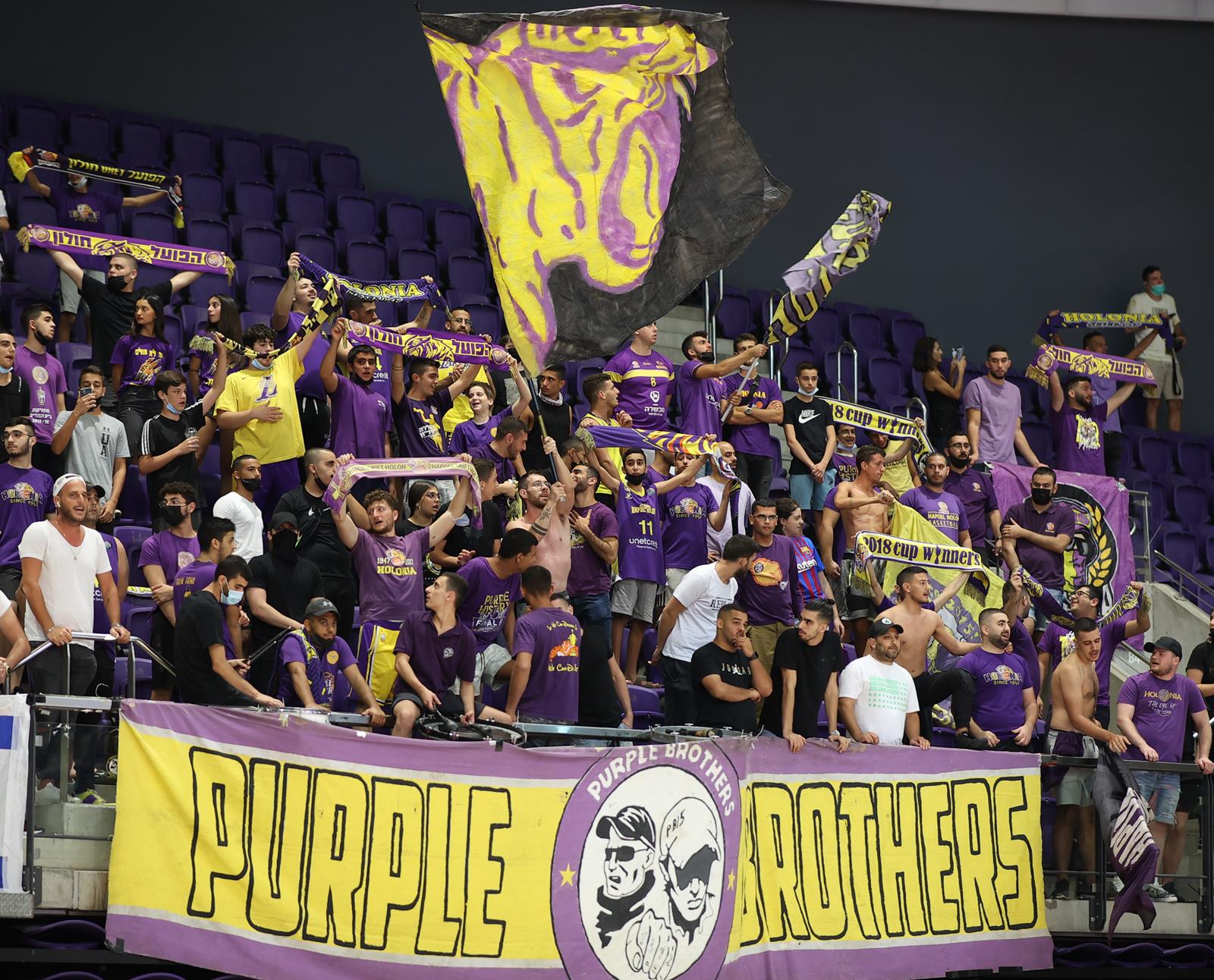 סגול נגד כתום ביציעי היכל טוטו (צילומים: דני מרון)