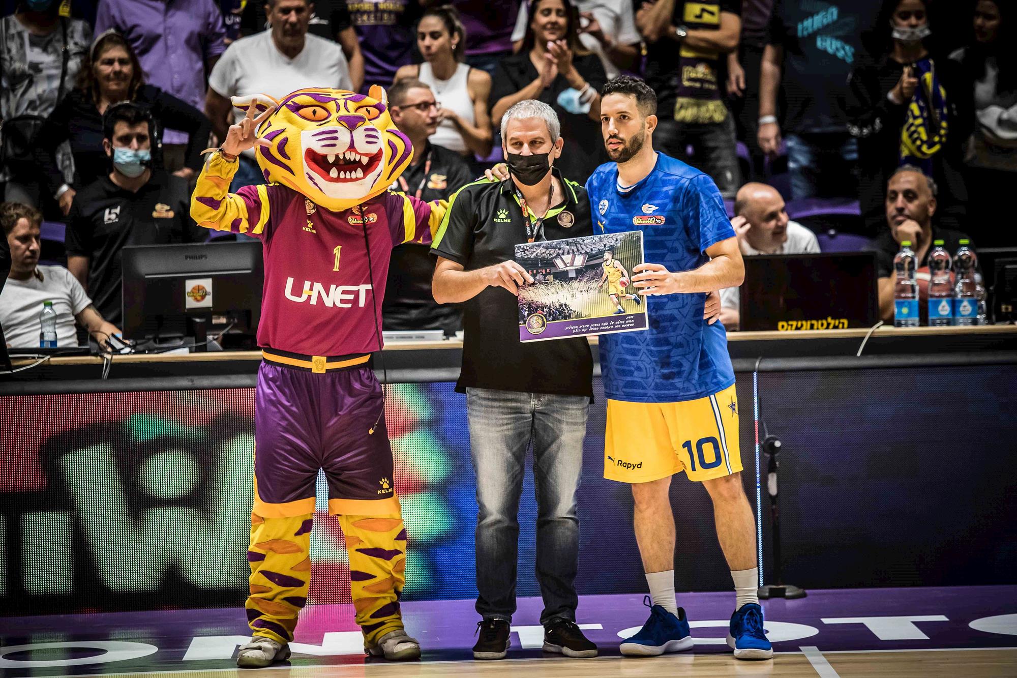 ברנדוויין מקבל תשורה מהיו"ר לנציאנו על תקופתו בחולון (צילום: עודד קרני)