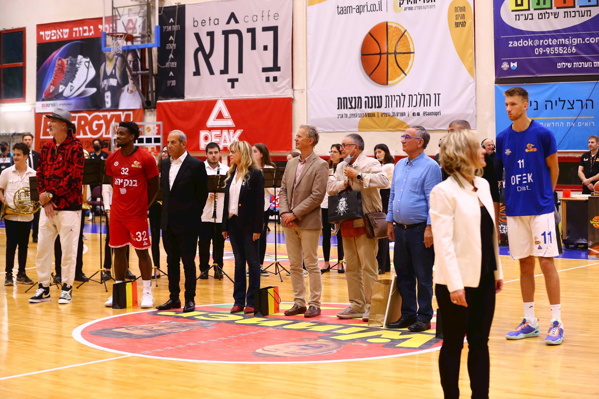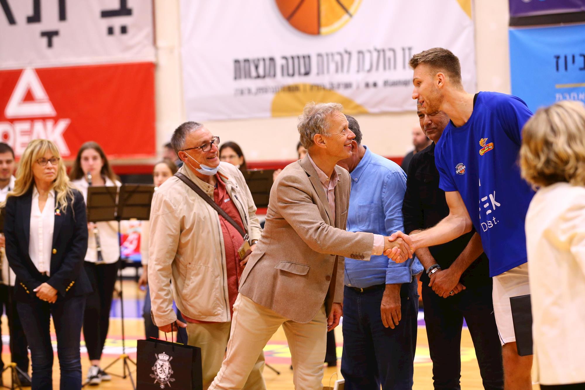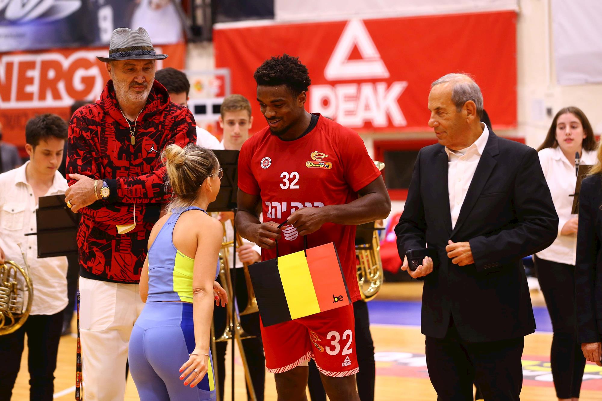 לפני המשחק: טקס בנוכחות שגריר בלגיה בישראל (צילומים: לירון מולדובן)