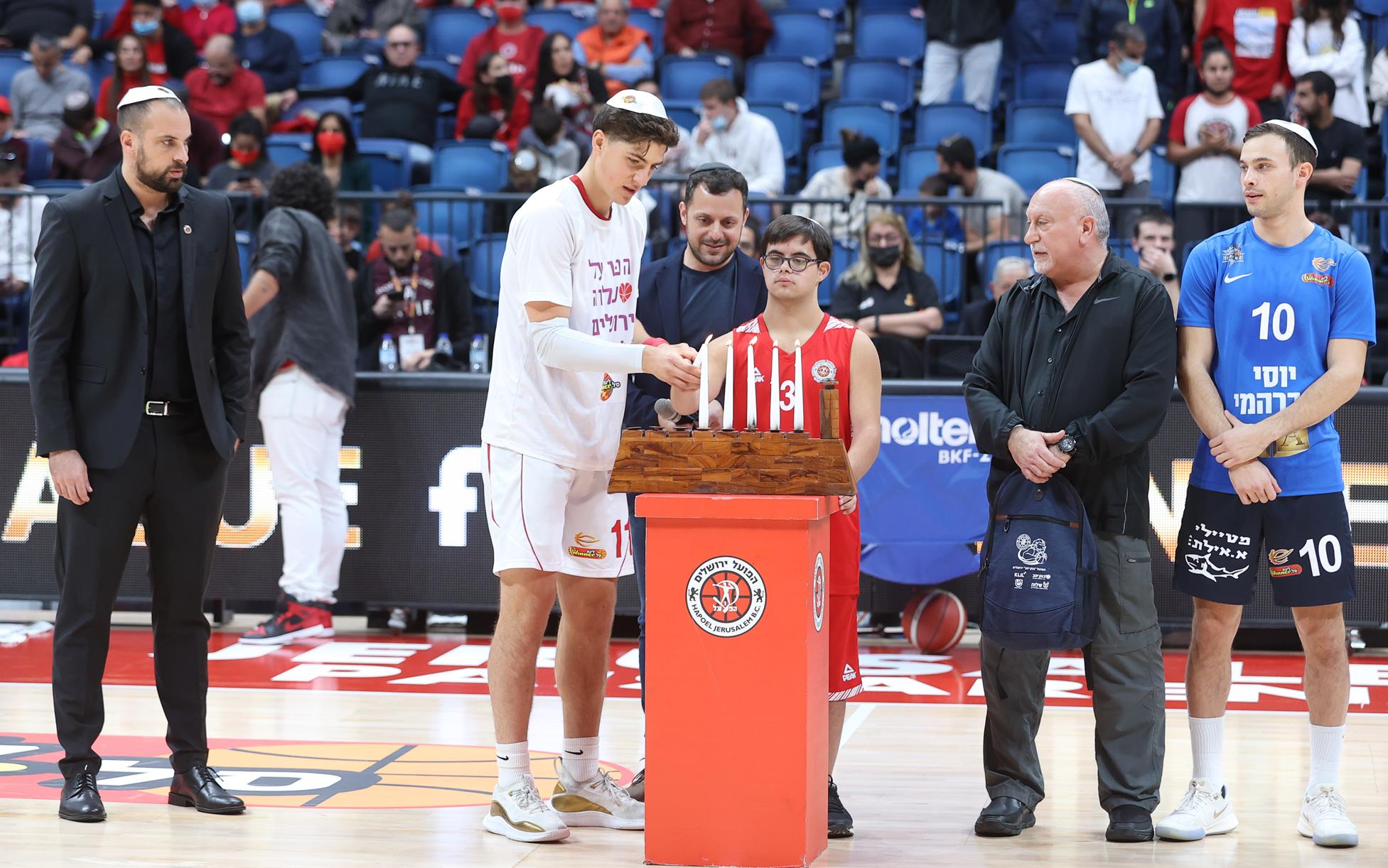 לפני המשחק: טקס הדלקת הנרות המסורתי עם ילדי "שלוה" (צילומים: דני מרון)