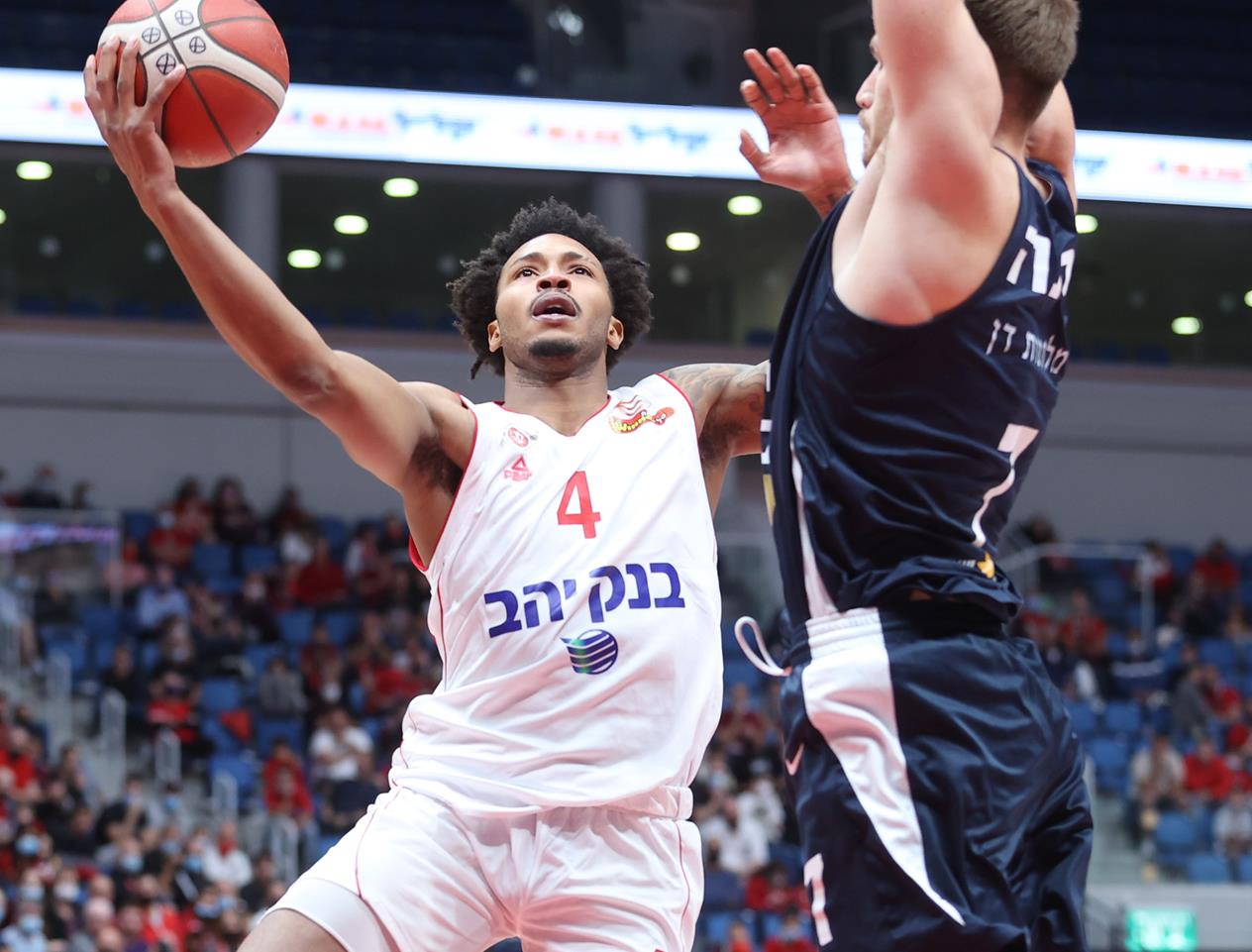 אדאמס מנסה לקלוע מעל רוינה (צילום: דני מרון)