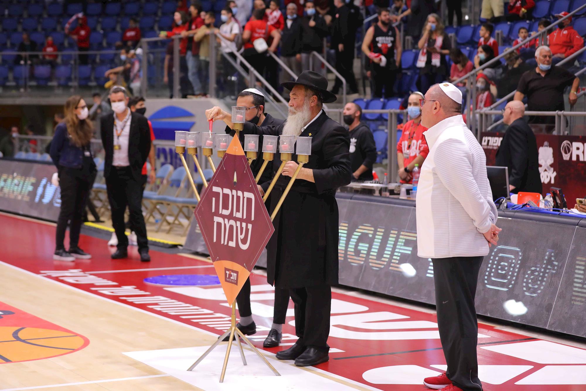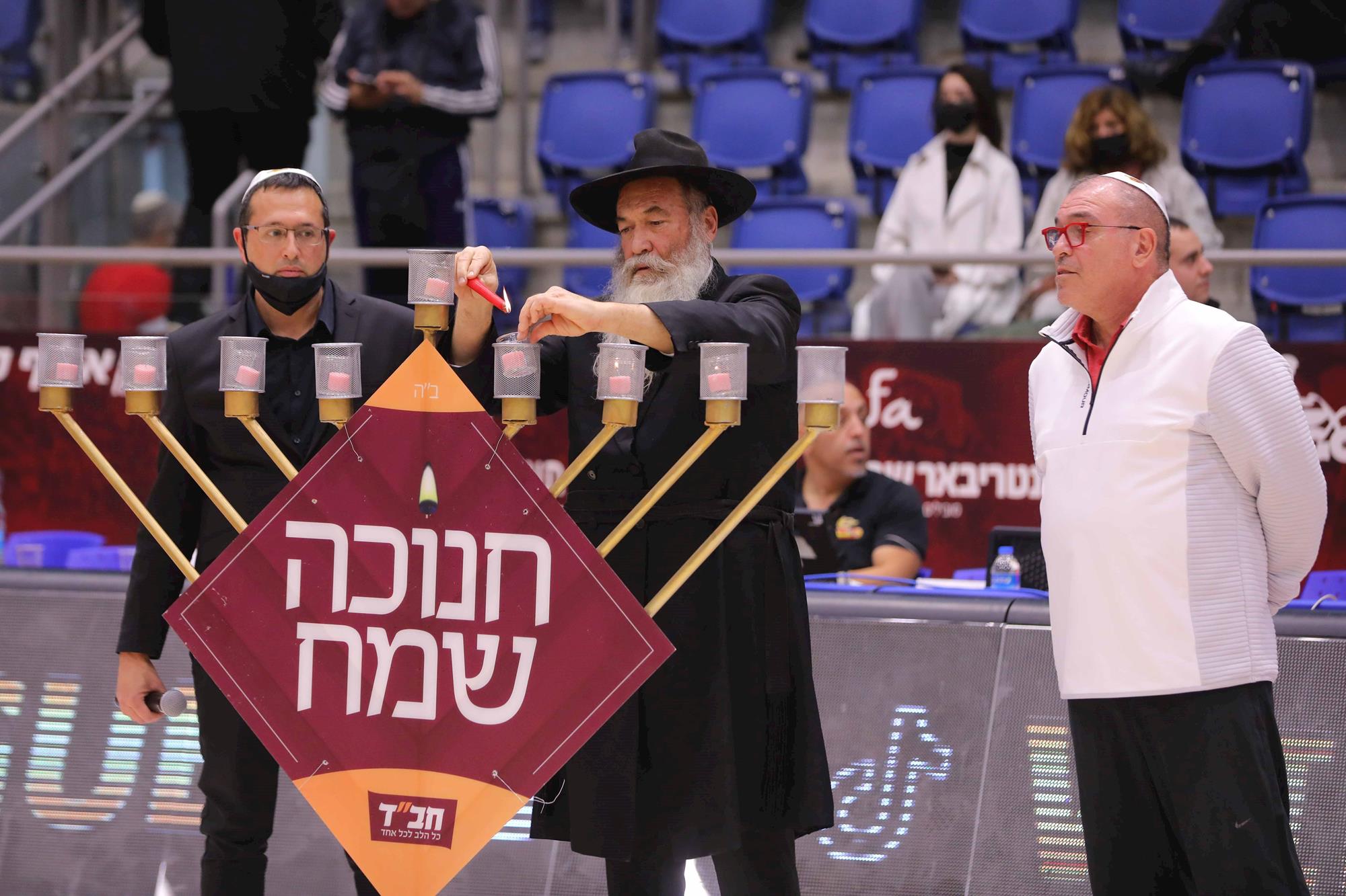 טקס הדלקת הנרות המסורתי במחצית המשחק (צילומים: לירון מולדובן)