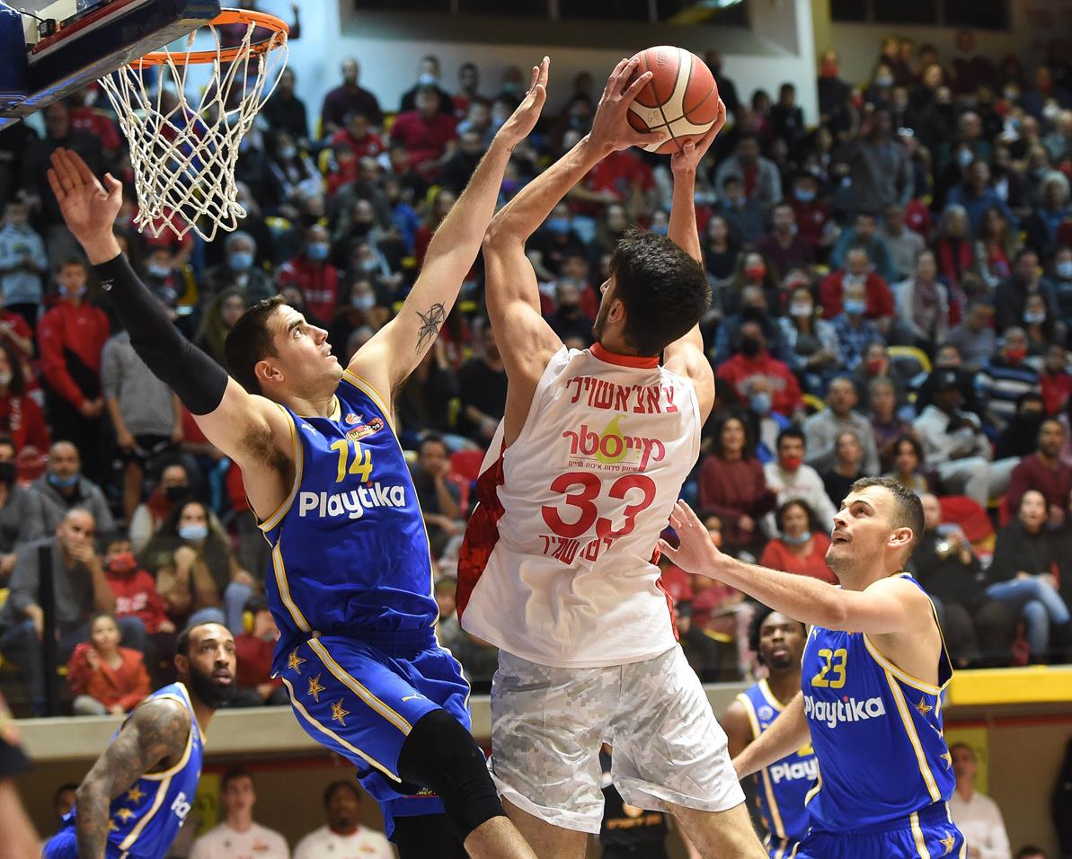 משחק מפלצתי של אנטה ז'יז'יץ' מתחת לסלים סייע למכבי "Playtika" ת"א לבצע מהפך מרשים מול הפועל "נופר אנרגיה" גליל עליון, 84:88 (צילום: ברני ארדוב)
