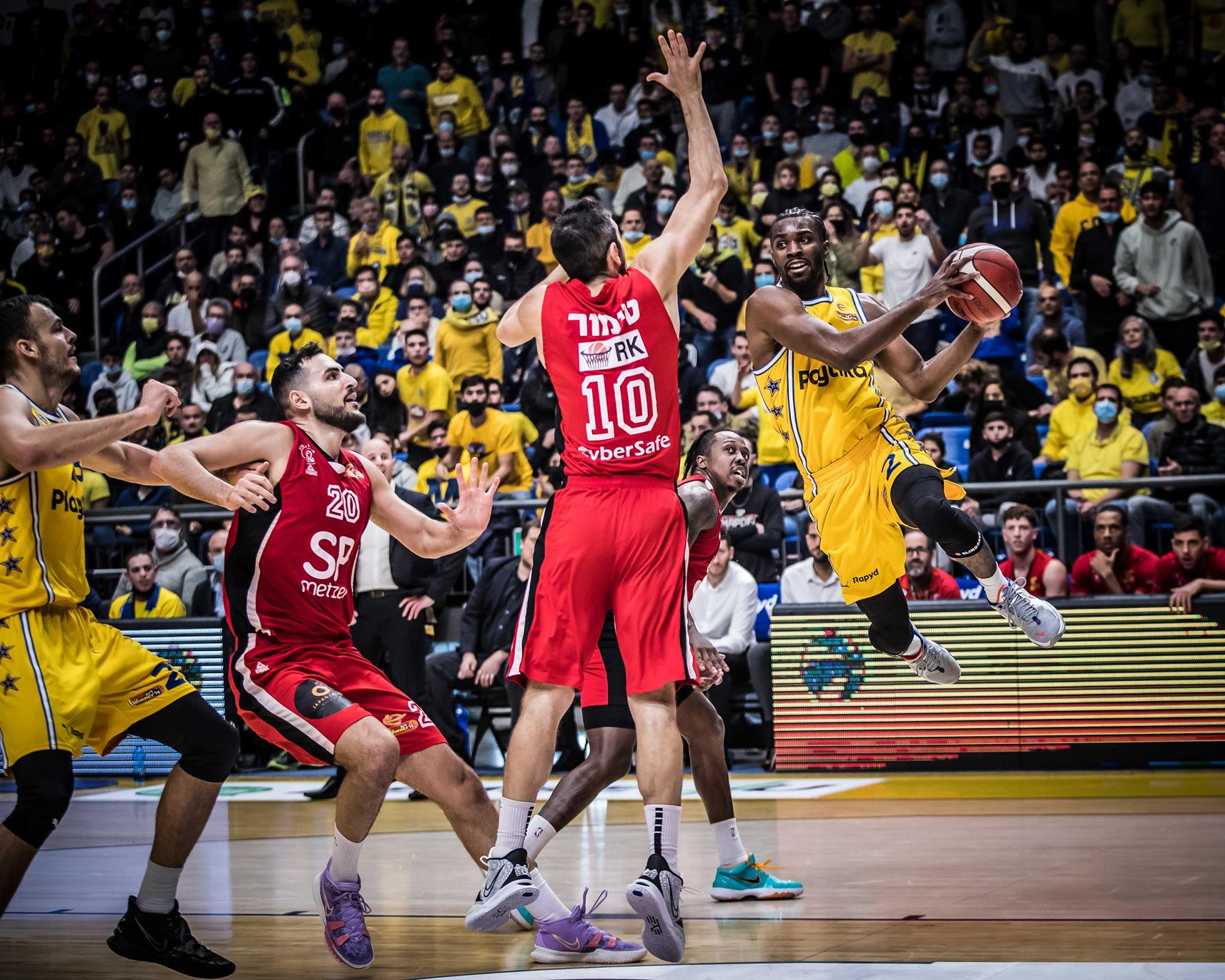 החבורה של דני פרנקו שיחקה טוב יותר במחצית הראשונה וכבר הוליכה ב-8, לפני שריצת 10:30 של הצהובים העניקה להם יתרון דו-ספרתי בפעם היחידה במשחק. האדומים לא הורידו את הראש, מיזערו נזקים לפני הרבע הרביעי ובהובלת ג'יי.פי טוקוטו ויאנג - ששבר שוויון עם סל ועבירה בדקה האחרונה – ביצעו מהפך מרשים. יאנג היה בשיאו עם 26 נקודות, ג'ייקובן בראון סימן וי נוסף מול הצהובים ועידן זלמנסון קבר לראשונה בקריירה שתי שלשות והיה מצוין מתחת לסלים במאני טיים.