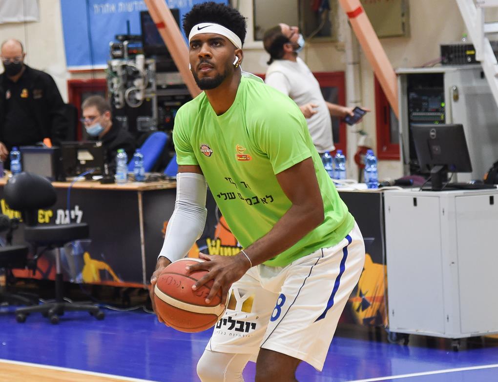 ריינולדס עולה לקליעה ביד אחת (צילום: ברני ארדוב)
