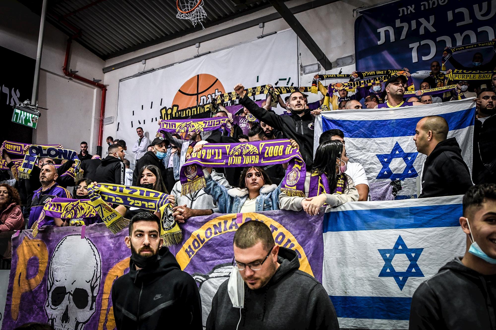נוכחות מרשימה מאוד לאורחים מחולון ביציע (צילום: רז גליל)