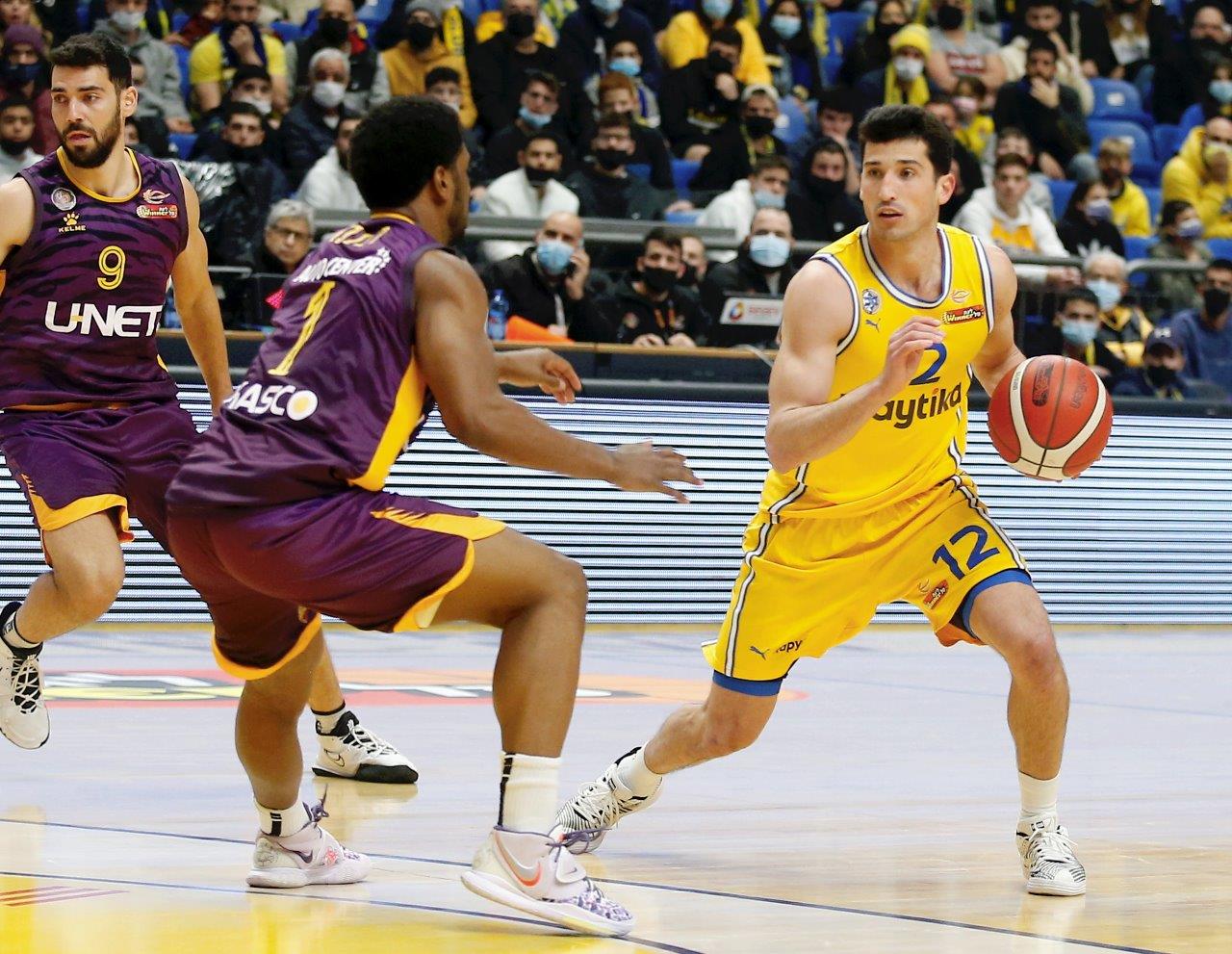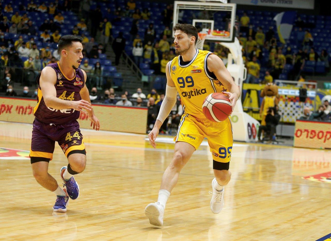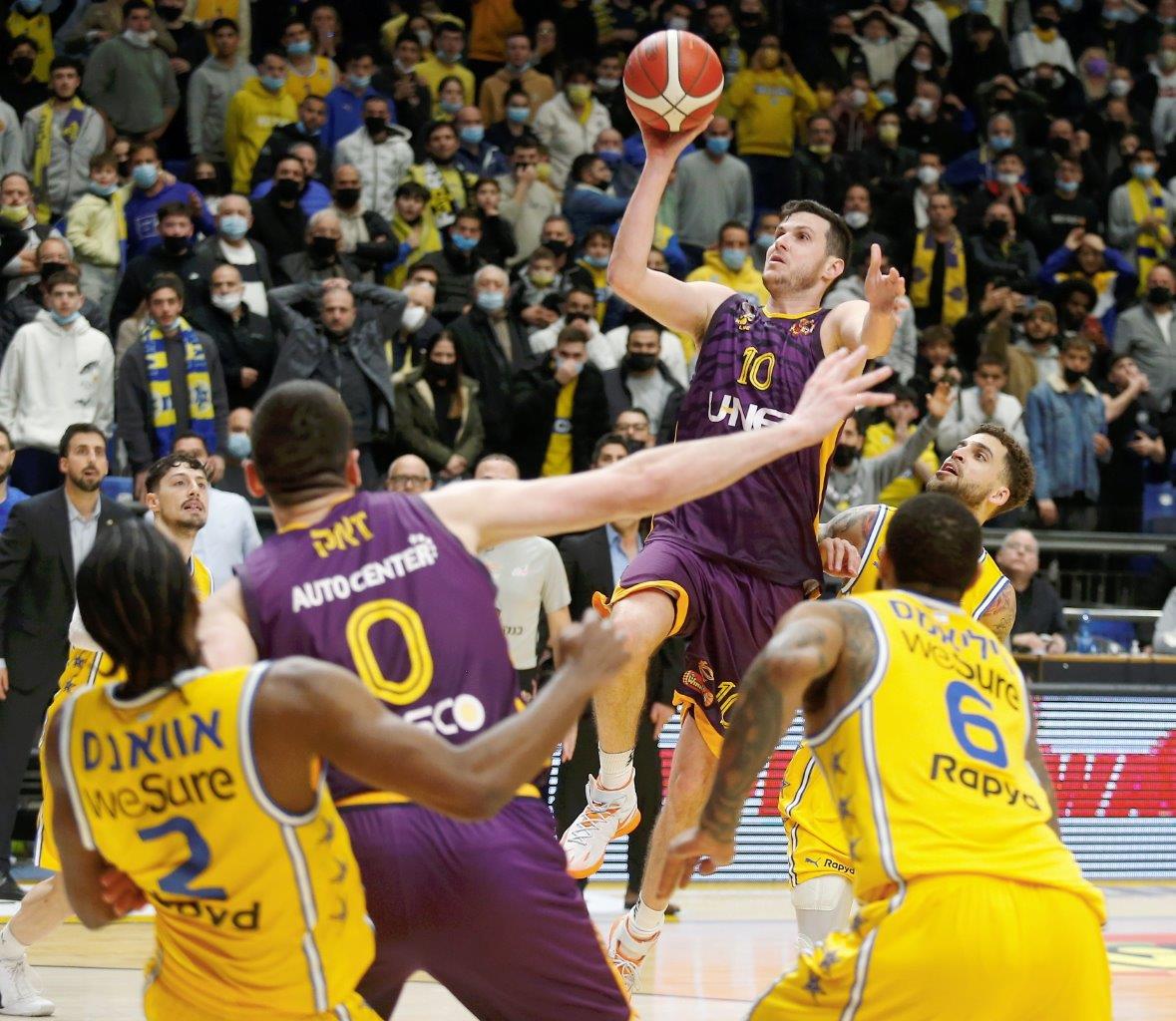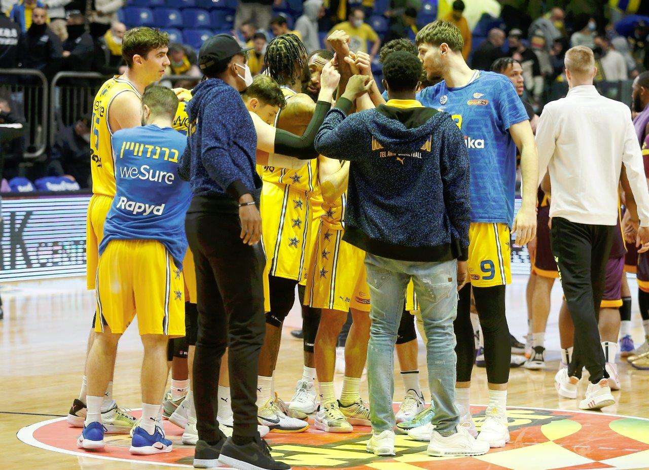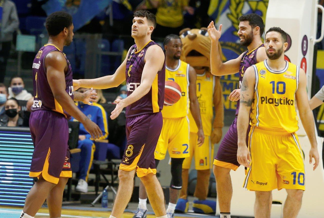 אחרי שנוצחה פעמיים על חודה של נקודה בחודש האחרון בדרבים, הגיע תורה של מכבי "Playtika" ת"א לנצח בצורה הכי צמודה ודרמטית: הצהובים-כחולים חזרו מפיגור דו-ספרתי במחצית השנייה, ספגו 10 נקודות בלבד ברבע הרביעי וגברו על הפועל "יונט" חולון 79:80 במותחן גדול הערב (שבת) בהיכל מנורה מבטחים. גיא פניני, שהיה אחראי בקליעה או במסירה לכל הנקודות של הסגולים-צהובים ברבע הרביעי מלבד 2, קיבל צ'אנס לנצח את המשחק בשניות הסיום, אך הכדור שלו טייל על הטבעת ויצא. מנהל מחלקת הסקאוטינג אבי אבן ועוזר המאמן נועם לוי אימנו בצוותא את האלופה, שמאמנה יאניס ספרופולוס ועוזריו ואסיליס יראגוטליס ודורון פרקינס נמצאו מאומתים לקורונה.