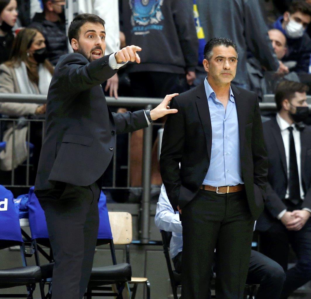 אבן ולוי. צוות האימון של הצהובים-כחולים הערב (צילום: אלן שיבר)