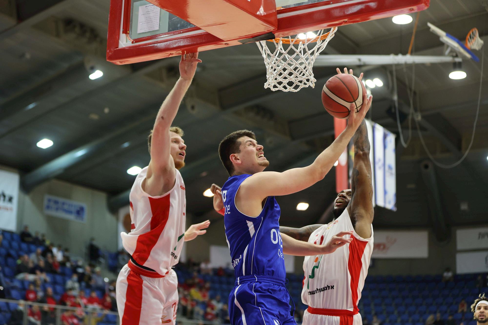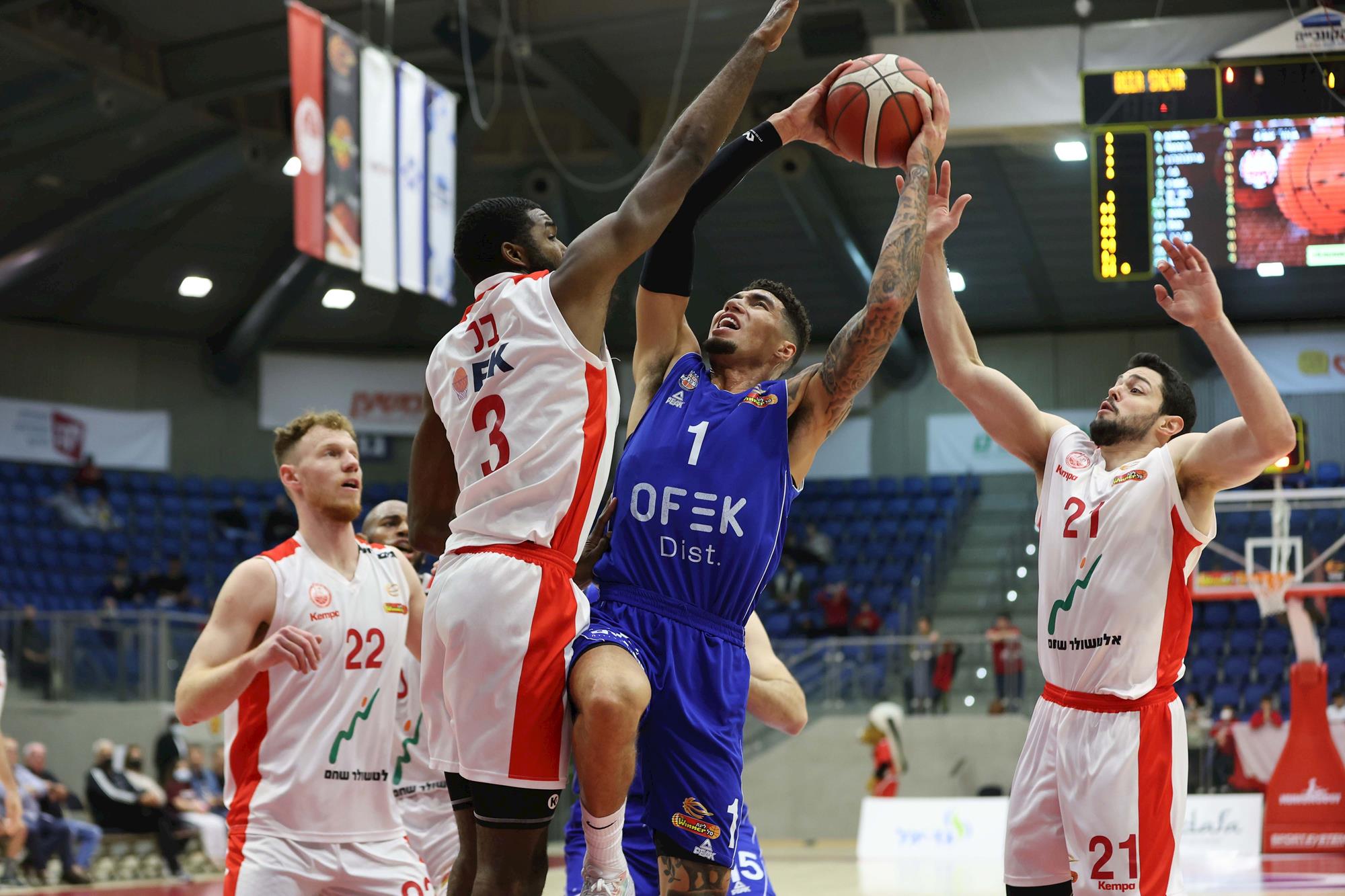 אחרי שבעה הפסדים רצופים מולה, בני "Ofek Dist" הרצליה גברה בקונכיה על הפועל "אלטשולר שחם" באר שבע 65:75 ועלתה למקום השני בטבלה (צילום: לירון מולדובן)