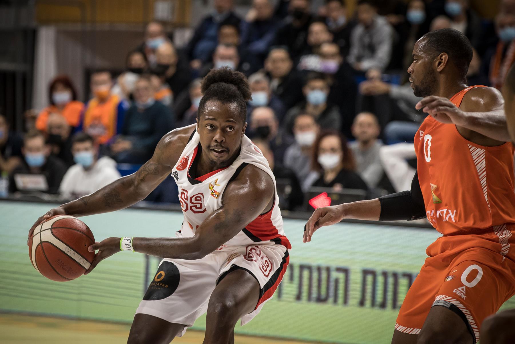 ג'יימס יאנג וג'יי.פי טוקוטו עזרו להפועל "SP מצר" ת"א להשאיר את ההפסד בגמר הגביע מאחור עם 62:77 בחוץ על מכבי "אפי קפיטל" ראשל"צ (צילום: ספי מגריזו)