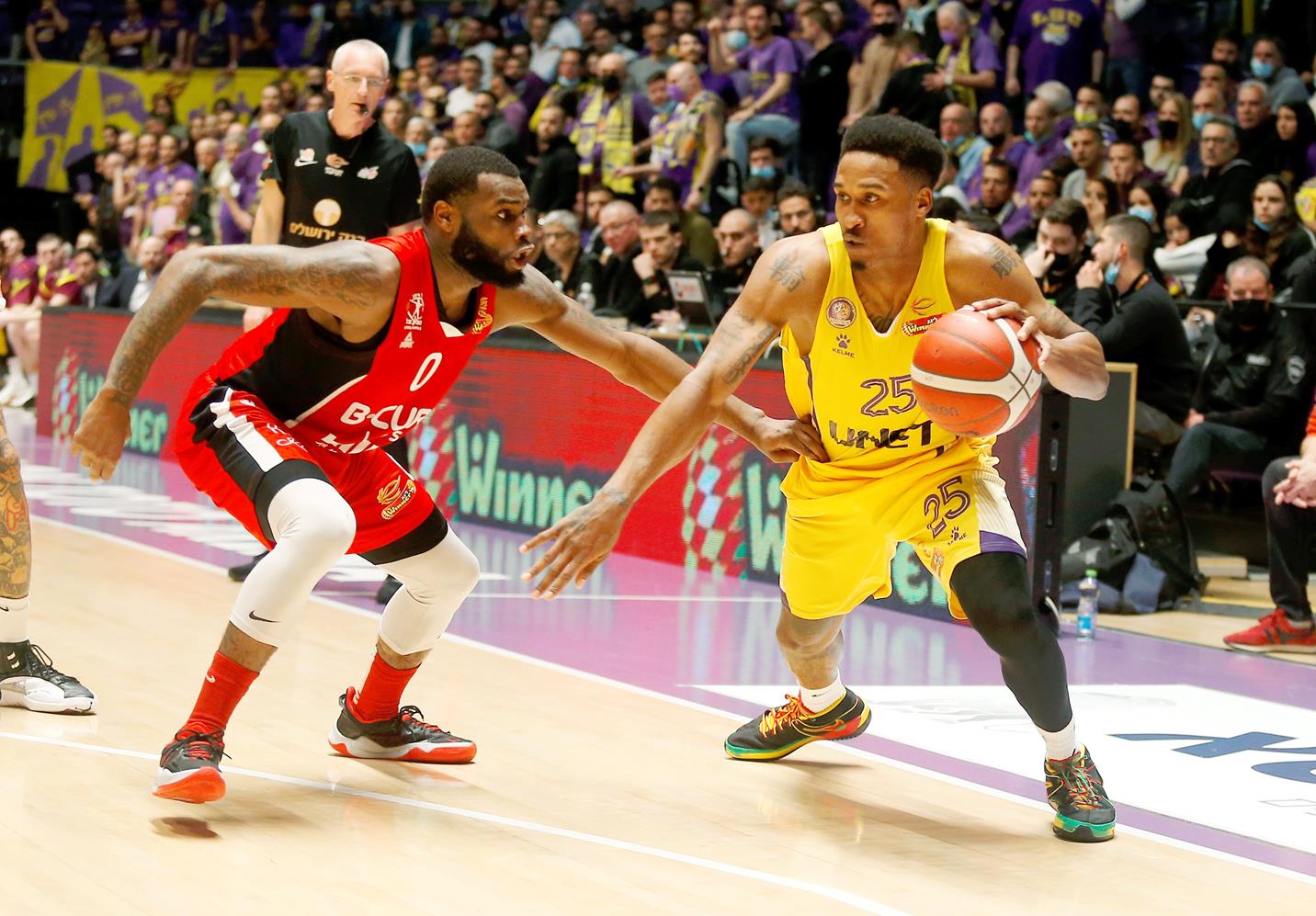 הפועל "יונט" חולון ניצחה את שני רבעי הסנדוויץ' בפער דו-ספרתי וסגרה עניין מוקדם מול הפועל "בי-קיור לייזר" חיפה, 70:87. קייזר ומגי בלטו (צילום: אלן שיבר)