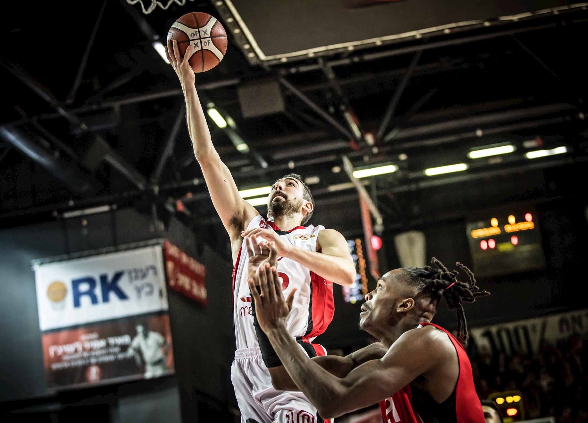 זלמנסון עובד עם הגב לסל מול אניס (צילום: עודד קרני)