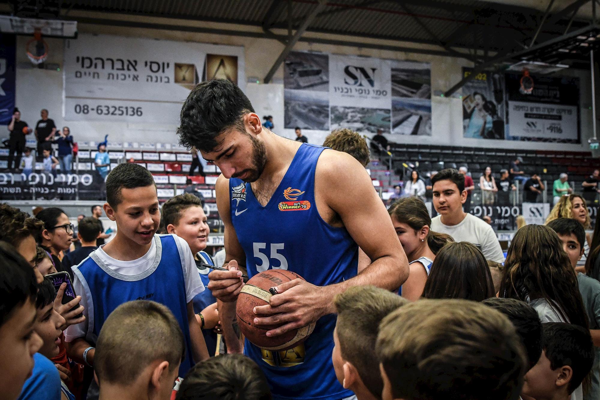 אביבי מחלק חתימות לילדי אילת (צילום: רז גליל)