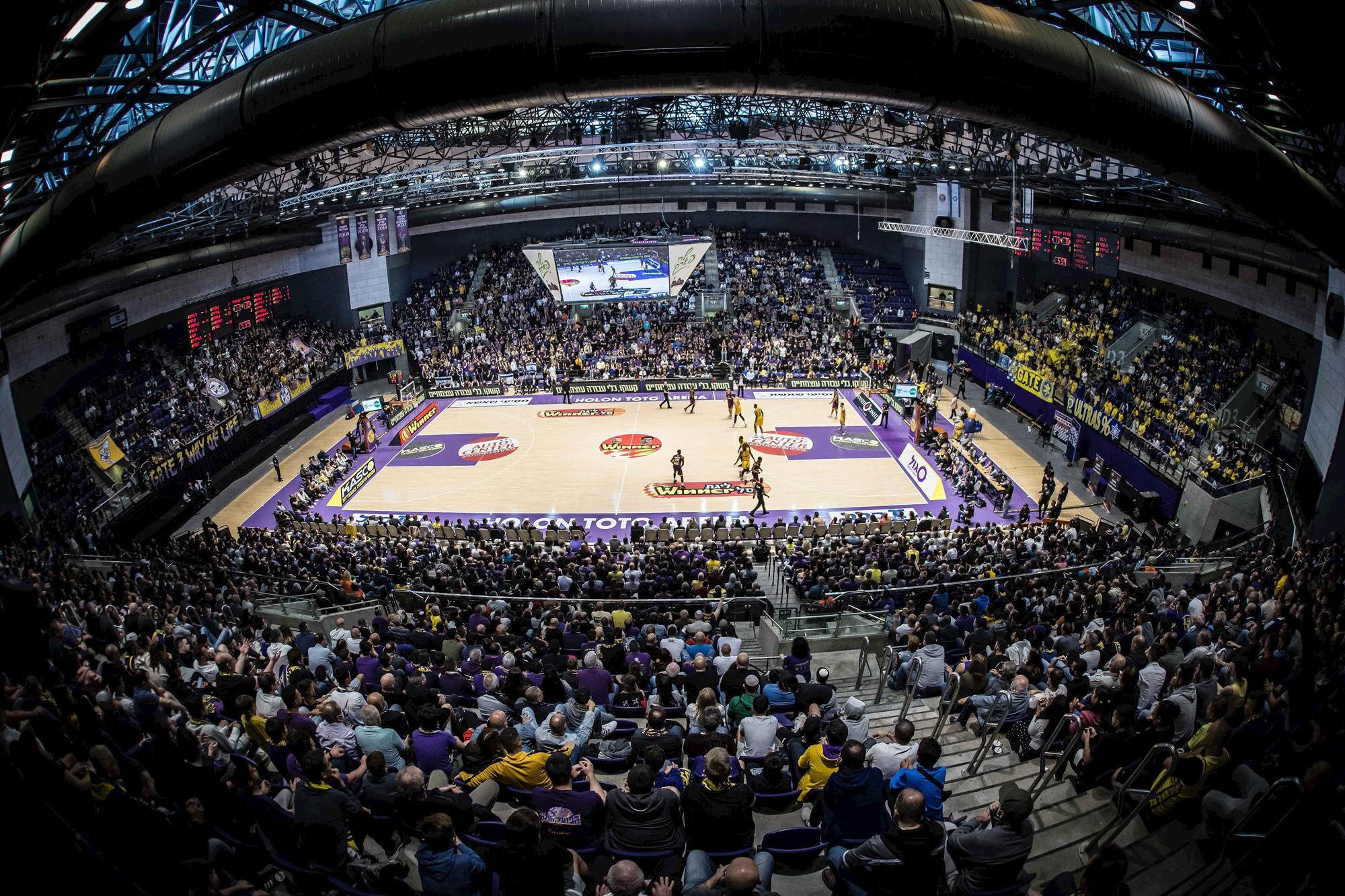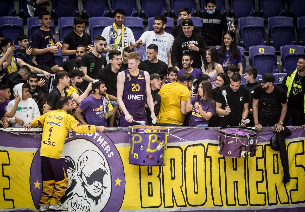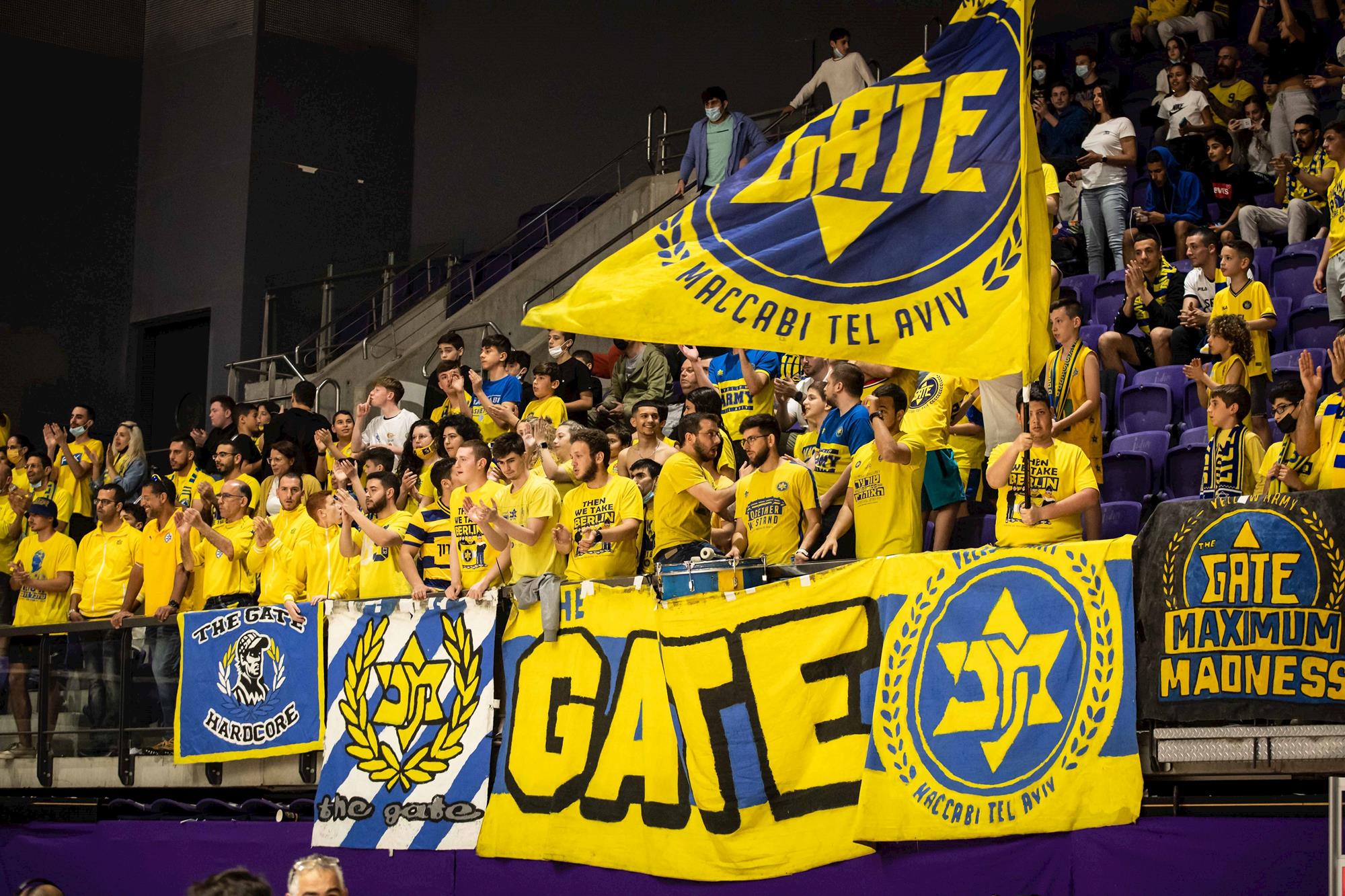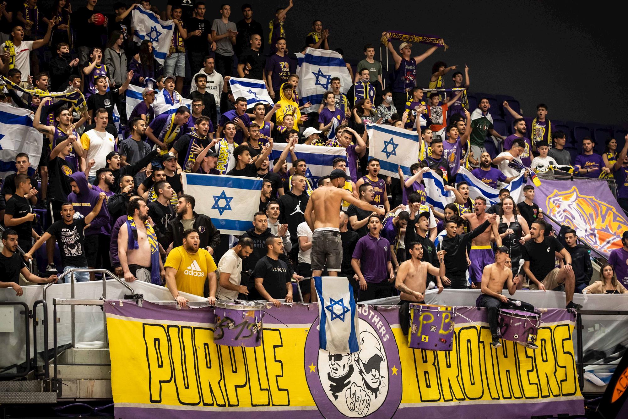 סגול צהוב מול צהוב כחול ביציעי היכל טוטו (צילומים: עודד קרני)