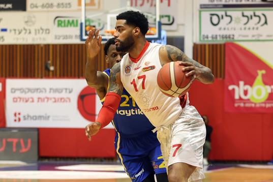 מכבי "Playtika" ת"א השלימה סוויפ עונתי על הפועל "נופר אנרגיה" גליל עליון עם 68:71 בחוץ וטיפסה בחזרה למקום הראשון. ווילבקין בלט (צילום: לילך וייס-רוזנברג)