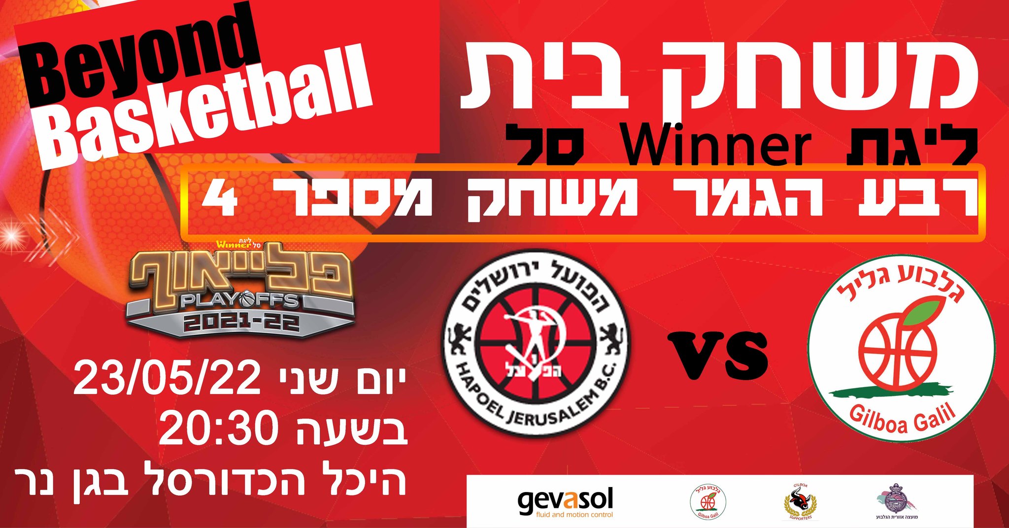 תמונת חצי גמר פלייאוף 2022 בליגת ווינר סל הושלמה הערב (שני), עם ניצחון החוץ של הפועל "בנק יהב" ירושלים בגן נר, 42:84 על הפועל גלבוע/גליל, שסוגר 1:3 בסדרה. האדומים מהבירה שוב ברחו לפער דו-ספרתי מוקדם והובילו בביטחה לאורך כל הערב, בדרך לניצחון שלישי ברציפות בסדרה אותה פתחו כזכור ברגל שמאל עם הפסד בית. ביום שישי תפתח החבורה של יותם הלפרין את סדרת חצי הגמר נגד הפועל "יונט" חולון בשעה 15:00 בפיס ארנה.