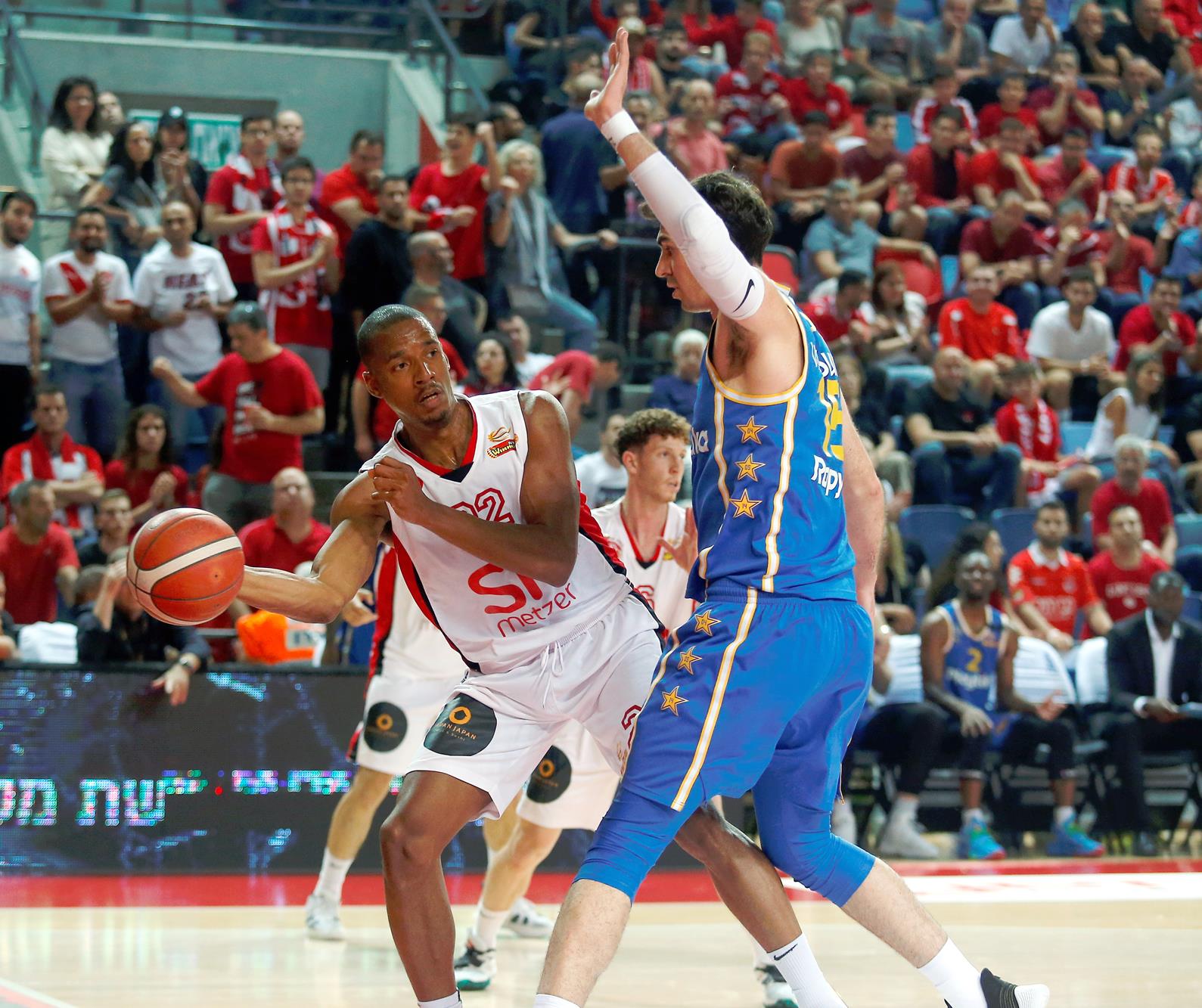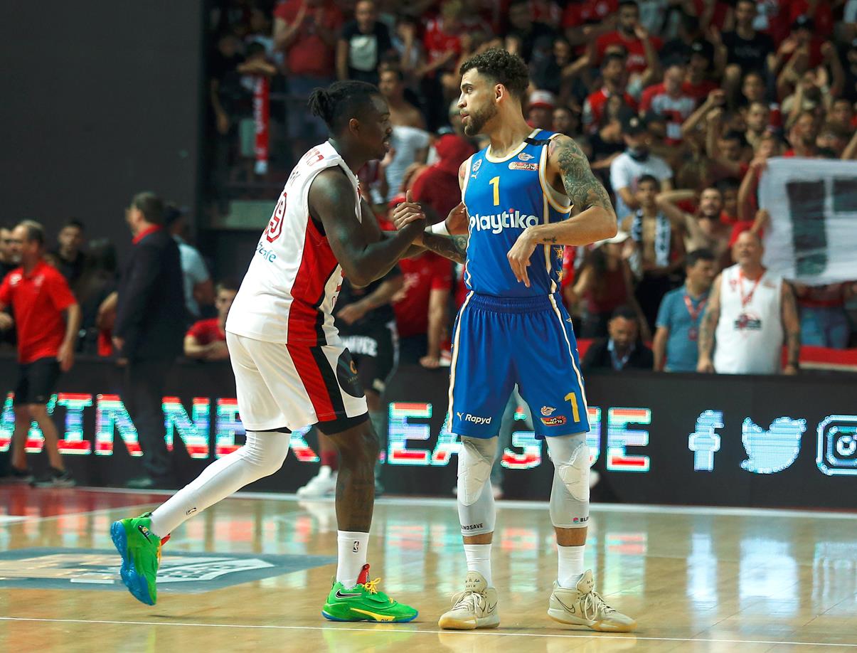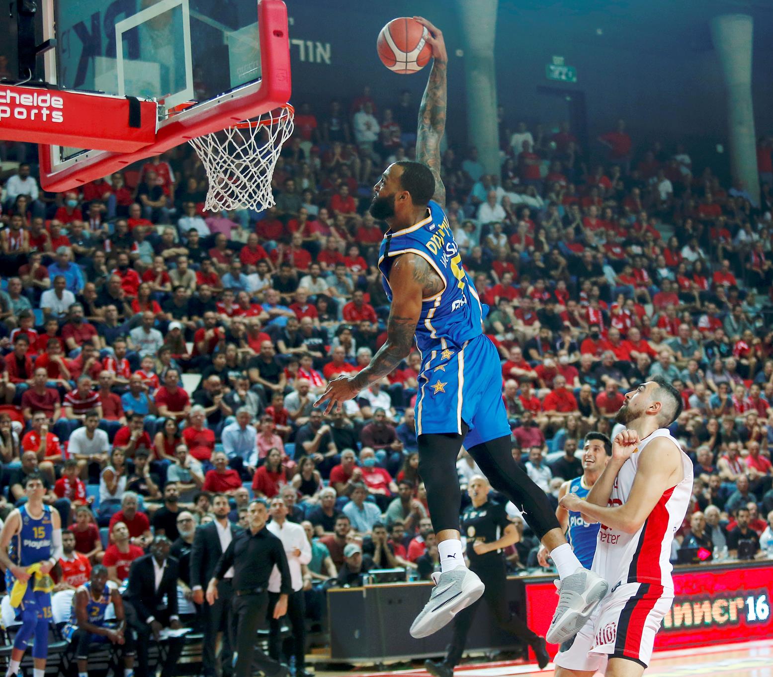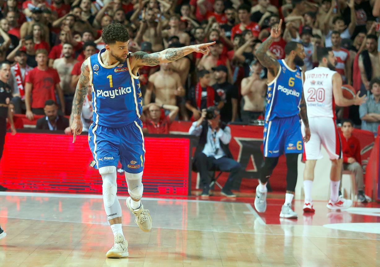 מכבי "Playtika" ת"א התאוששה מפתיחה רעה, מחקה פיגור 16 וגברה על הפועל "SP מצר" ת"א 1:3 בסדרה עם 77:82 בחוץ. וויליאמס ו-ווילבקין בלטו (צילום: אלן שיבר)
