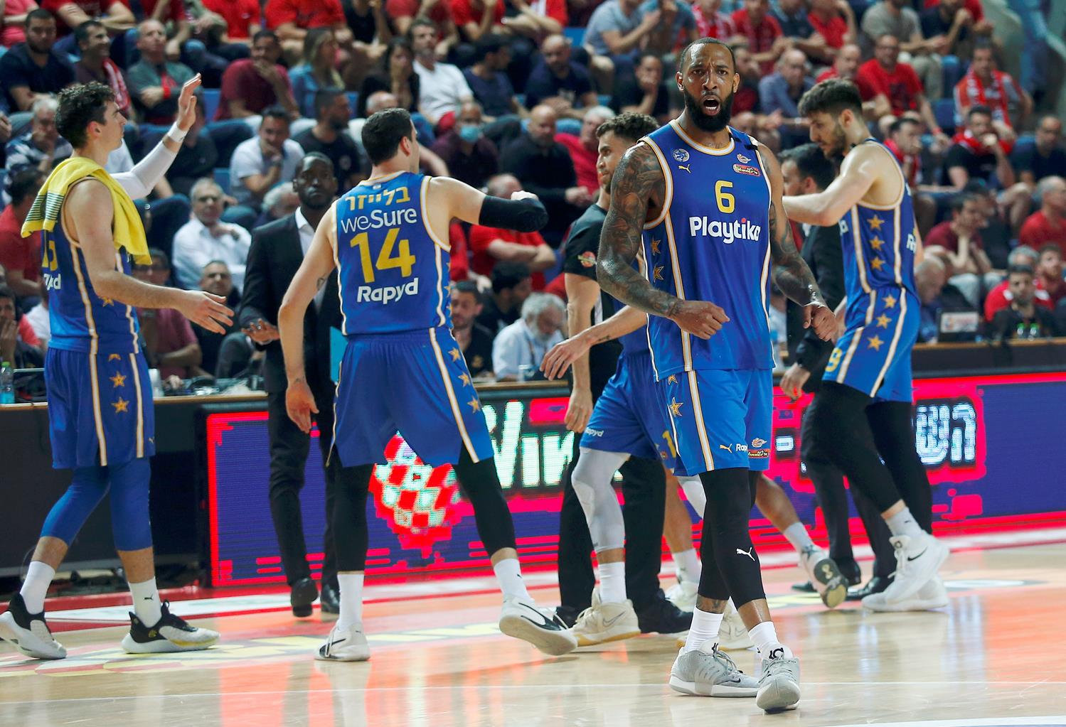 מכבי "Playtika" ת"א: ווילבקין 28 (5-12 לשלוש, 2-6 לשתיים, 9-10 מהקו, 6 אסיסטים), וויליאמס 25 (5-8 לשתיים, 5-6 לשלוש, 9 ריבאונדים), סורקין 10 (4-9 מהשדה, 12 ריבאונדים), ננאלי (2-5 לשלוש) ודיברתולומיאו (2-5 לשלוש) 6 כ"א, בלייזר 3 (0-6 מהשדה, 3-4 מהקו), אוואנס (0-7 מהשדה, 4 אסיסטים) וכהן 2 כ"א.