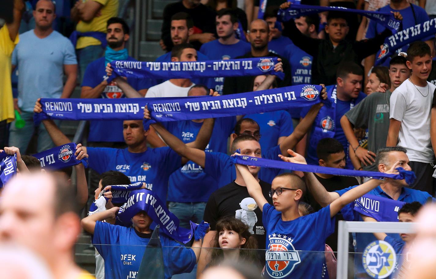 נוכחות יפה לאורחים מהרצליה ביציע (צילום: אלן שיבר)