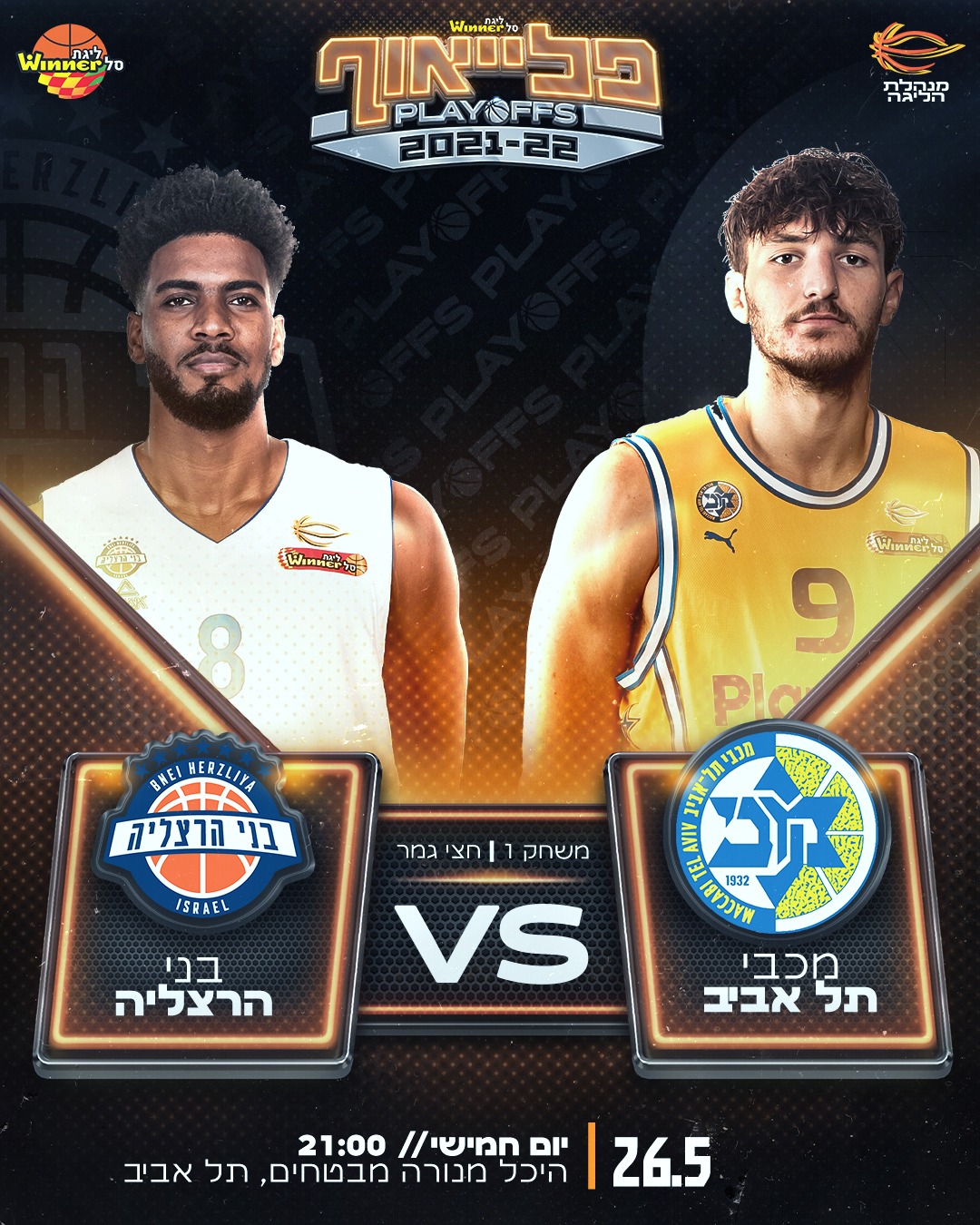 סדרות חצי גמר פלייאוף ליגת ווינר סל ייצאו לדרך הערב (חמישי) בהיכל מנורה מבטחים עם מפגש מסקרן בין האלופה למחזיקת הגביע, כאשר מכבי "Playtika" ת"א, שסיימה את העונה הרגילה במקום השני, תארח את בני "Ofek Dist" הרצליה השלישית למשחק מספר 1 בסדרת הטוב משלושה משחקים (21:00, שידור ישיר בערוץ SPORT5, שופטים: עומר אסתרון, עמית בלק, כפיר מועלם). אנטה ז'יז'יץ' נרשם אצל הצהובים-כחולים על חשבונו של ג'יילן ריינולדס, שיישאר על אזרחי בסדרה לצד אנג'לו קלויארו וקיירי תומאס. אצל החבורה מהשרון קווינטון הוקר חוזר לסגל במקום די.ג'יי קופר, שלא יתלבש לסדרה, כמו גם אלכסנדר זצ'ביץ'.