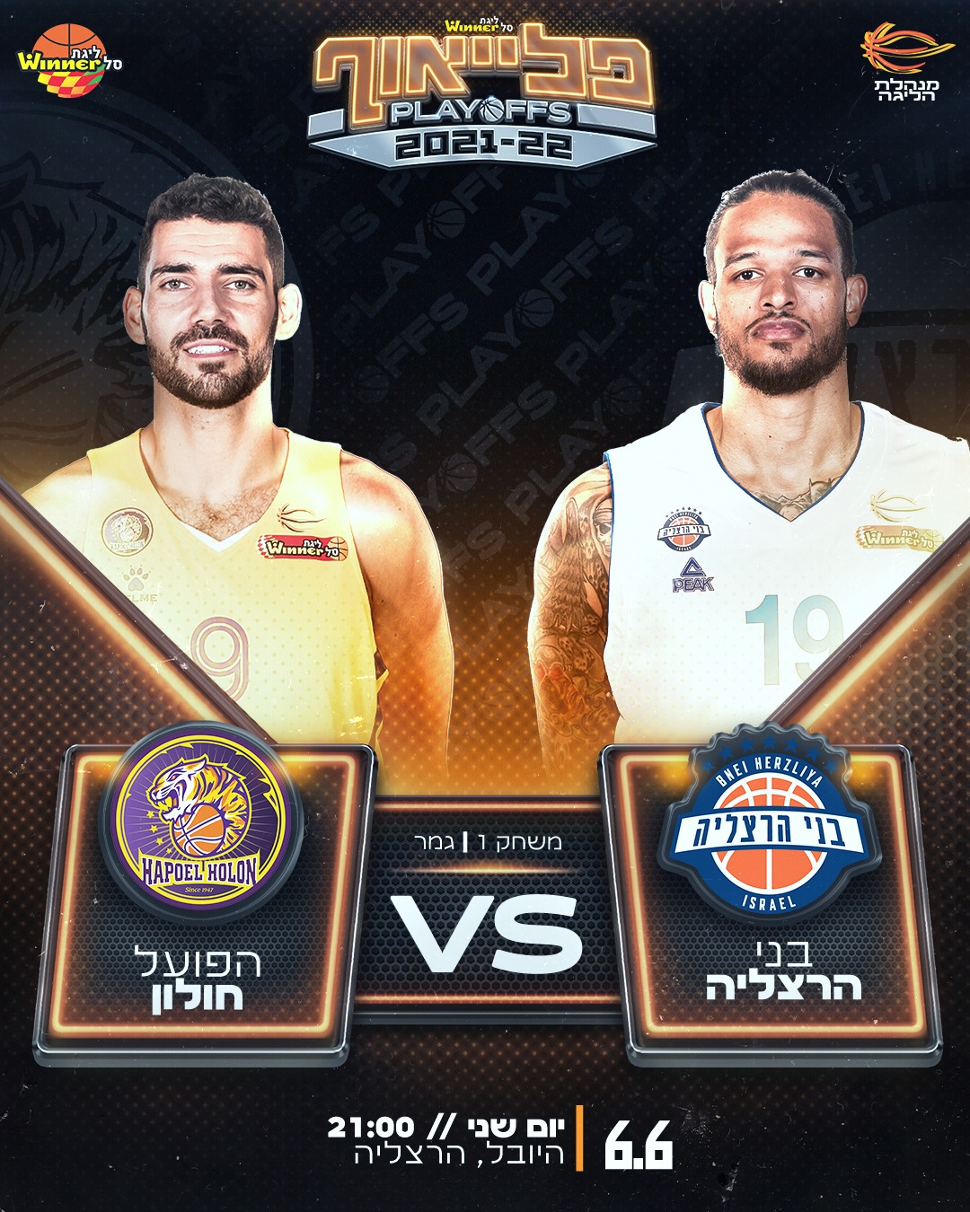 פלייאוף 2022 בליגת ווינר סל יגיע הערב (שני) לרגע השיא שלו, עם פתיחתה של סדרת הגמר בין בני "Ofek Dist" הרצליה להפועל "יונט" חולון באולם היובל (21:00, שידור ישיר בערוץ SPORT5, שופטים: עומר אסתרון, עמית בלק, דן ילון). הסגולים יחסרו בסדרה את פרדריק בורדיון הפצוע, שעבר ניתוח ולא ישוב לשחק העונה. שתי הקבוצות ימשיכו בסגלים זהים לאלו שהופיעו בסיבוב שעבר: המקומיים בלי די.ג'יי קופר ואלכסנדר זצ'ביץ', האורחים ללא סטיב זאק ואדם סמית'.