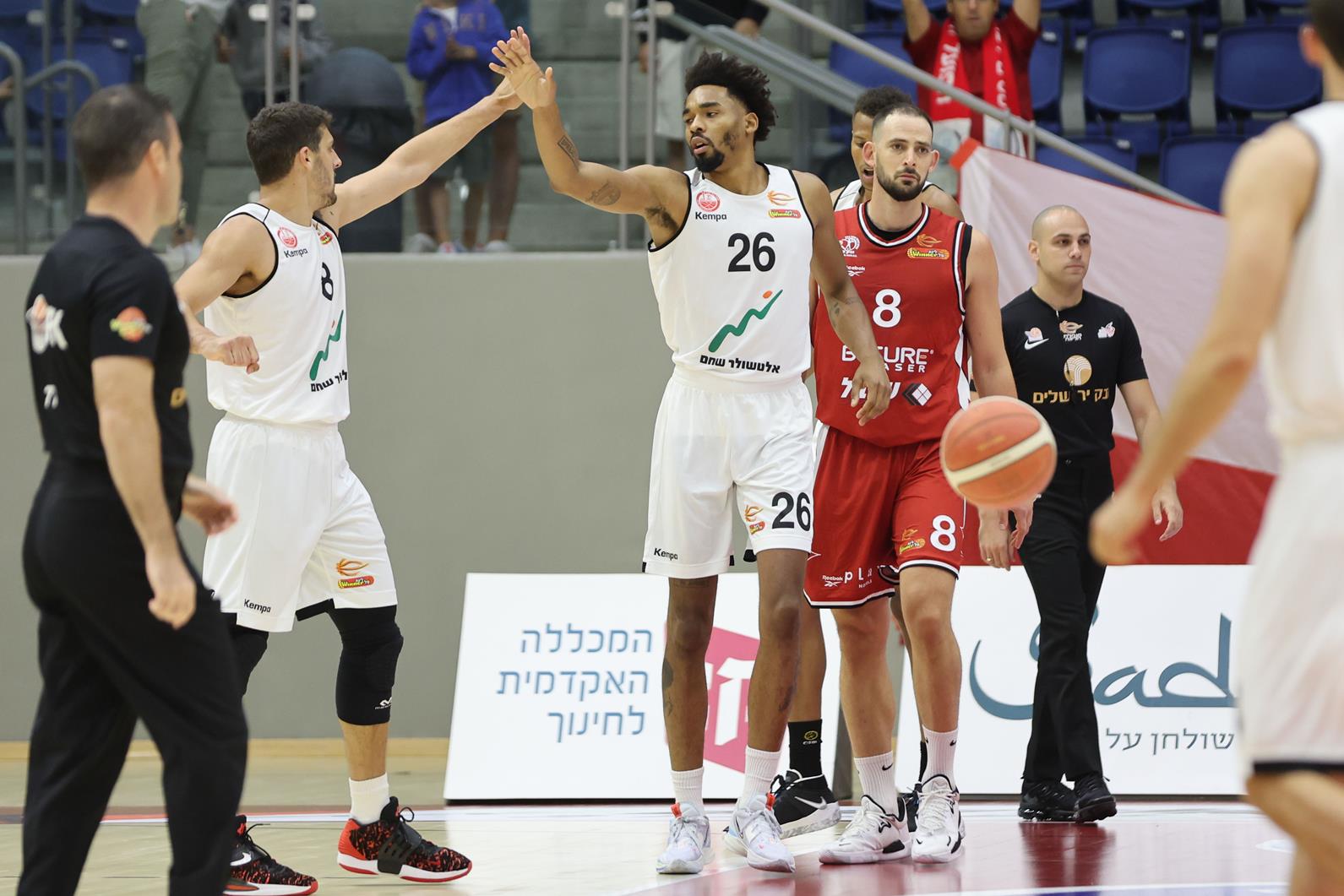 שמחון ואפסון החזירו את הפועל "בי-קיור לייזר" חיפה מפיגור 10 ברבע האחרון ל-92:96 על הפועל "אלטשולר שחם" באר שבע/דימונה (צילום: לירון מולדובן)