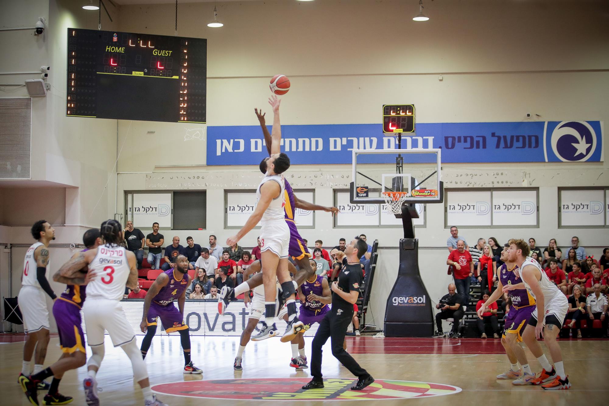 ג'ונס וסרור קופצים לכדור הפתיחה (צילום: דודי אוחיון)