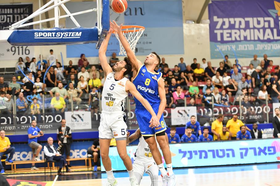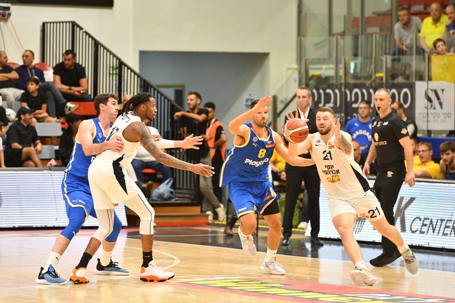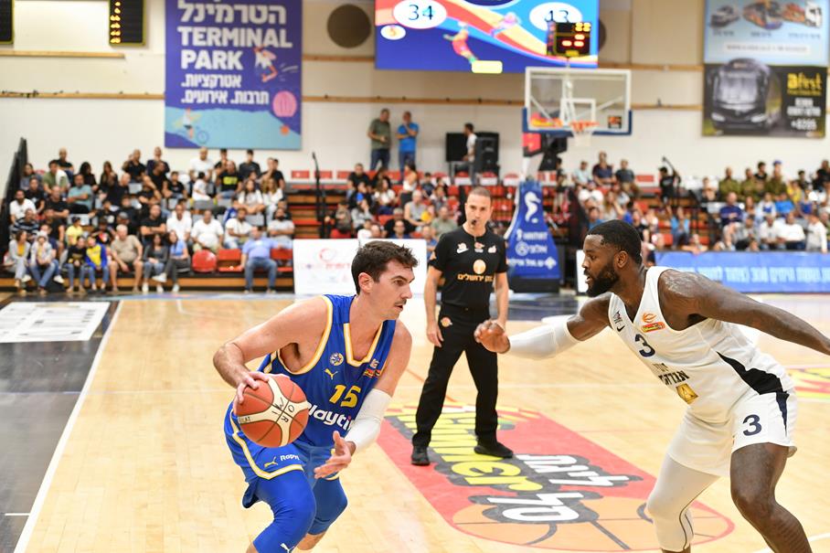 גם בלי בולדווין ובראון, מכבי "Playtika" ת"א לא ממש התקשתה לנצח את הפועל "יוסי אברהמי" אילת 74:96, בדרך למאזן 0:4 בליגת ווינר סל (צילום: יוד צילומים)