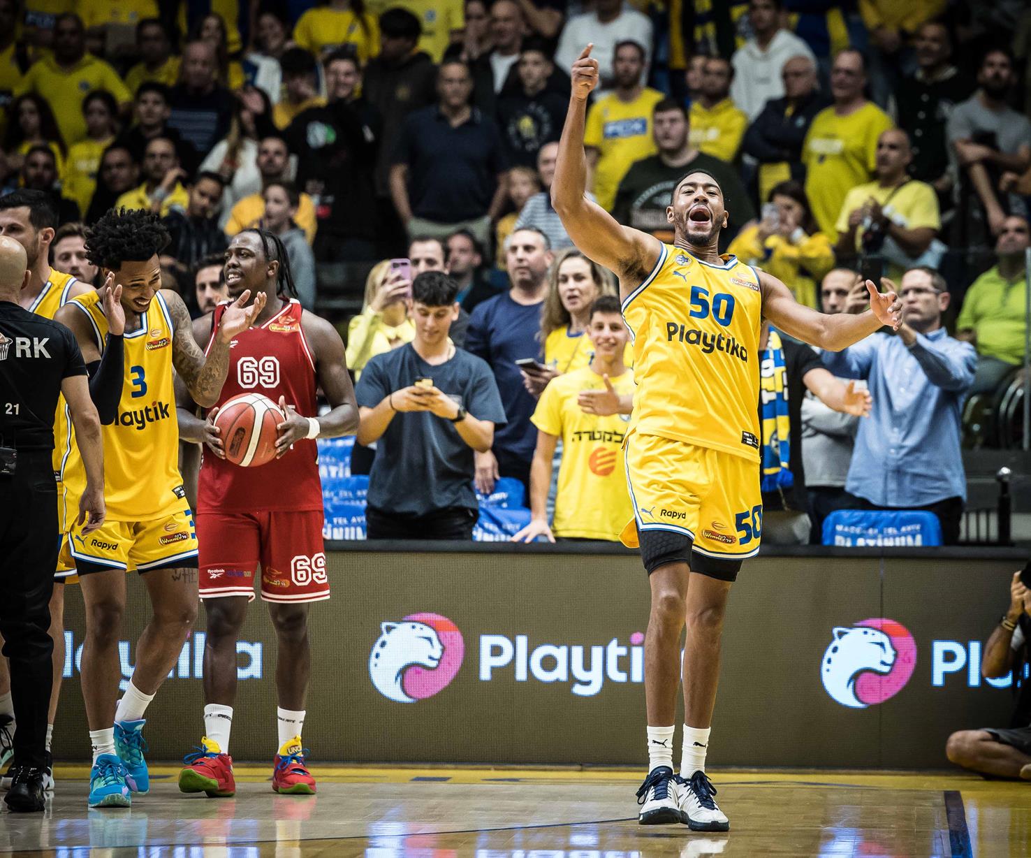 דיברתולומיאו העיר את מכבי "Playtika" ת"א במחצית השנייה ובסיועם של סורקין ופוית'רס העניק לה 90:95 על הפועל "Vegan Friendly" ת"א (צילום: עודד קרני)