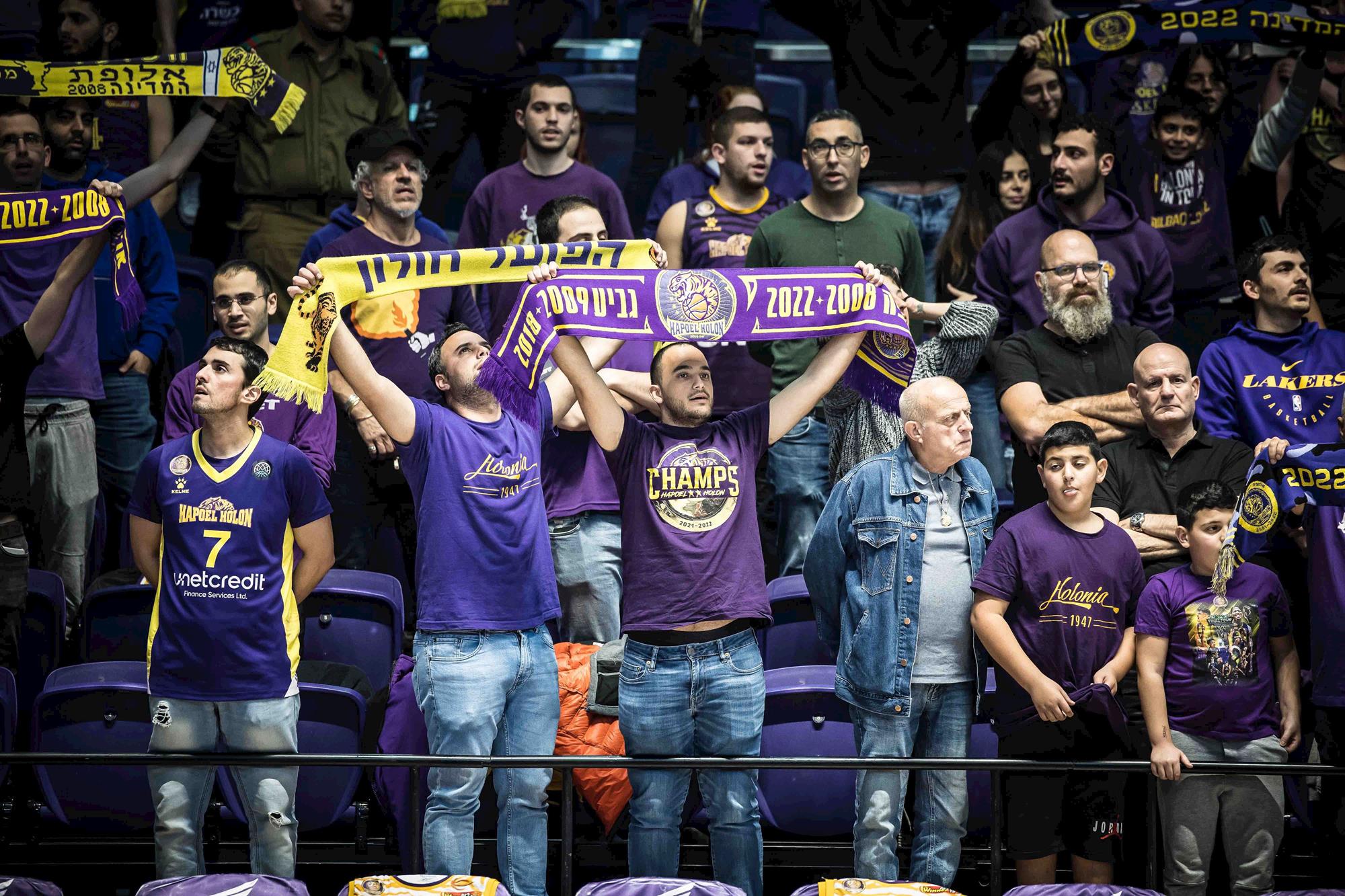 סגול-צהוב נגד אדום-לבן ביציעים (צילומים: עודד קרני)