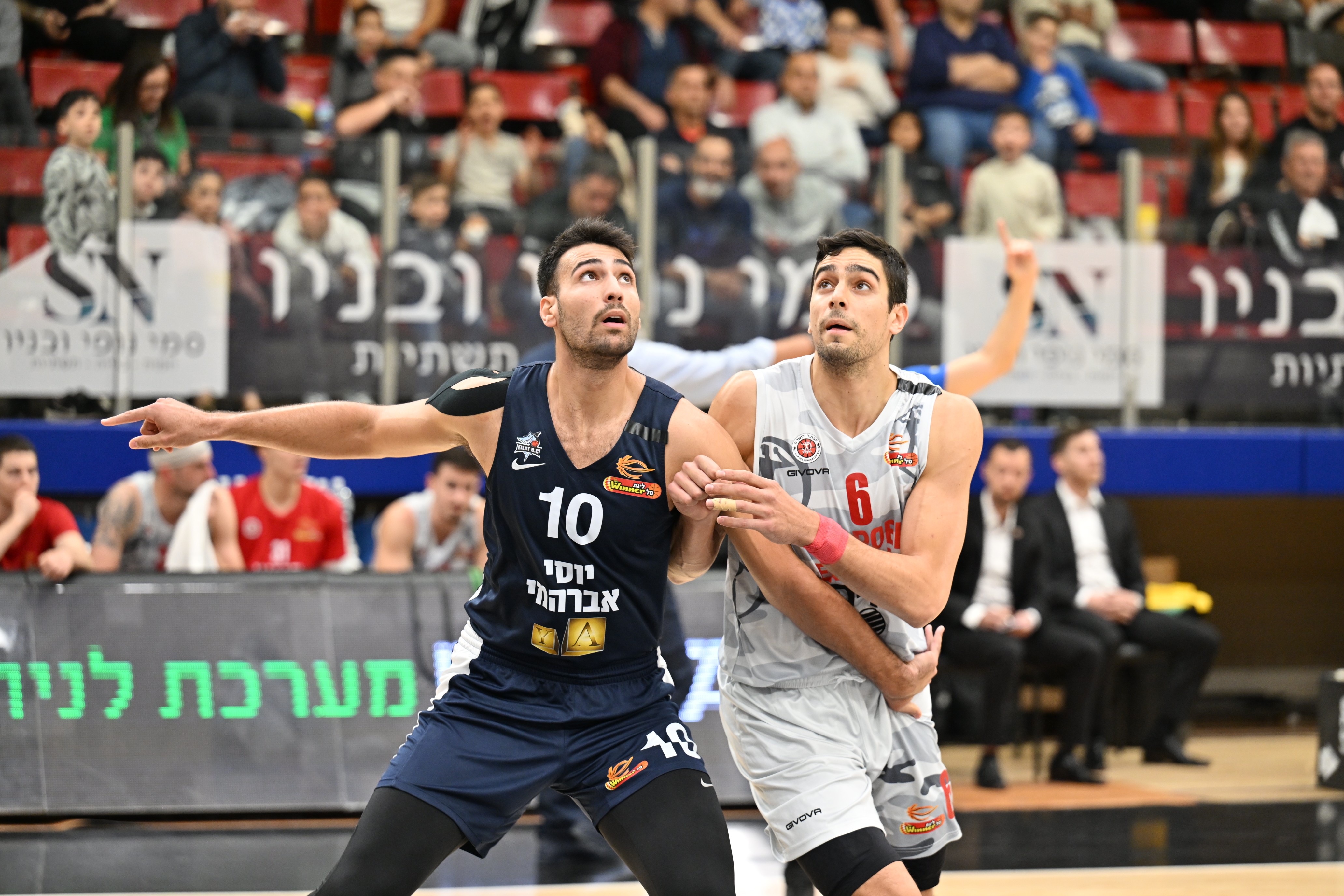 אביבי ושגב בקרב עיקש מתחת לסל (צילום: יוד צילומים)