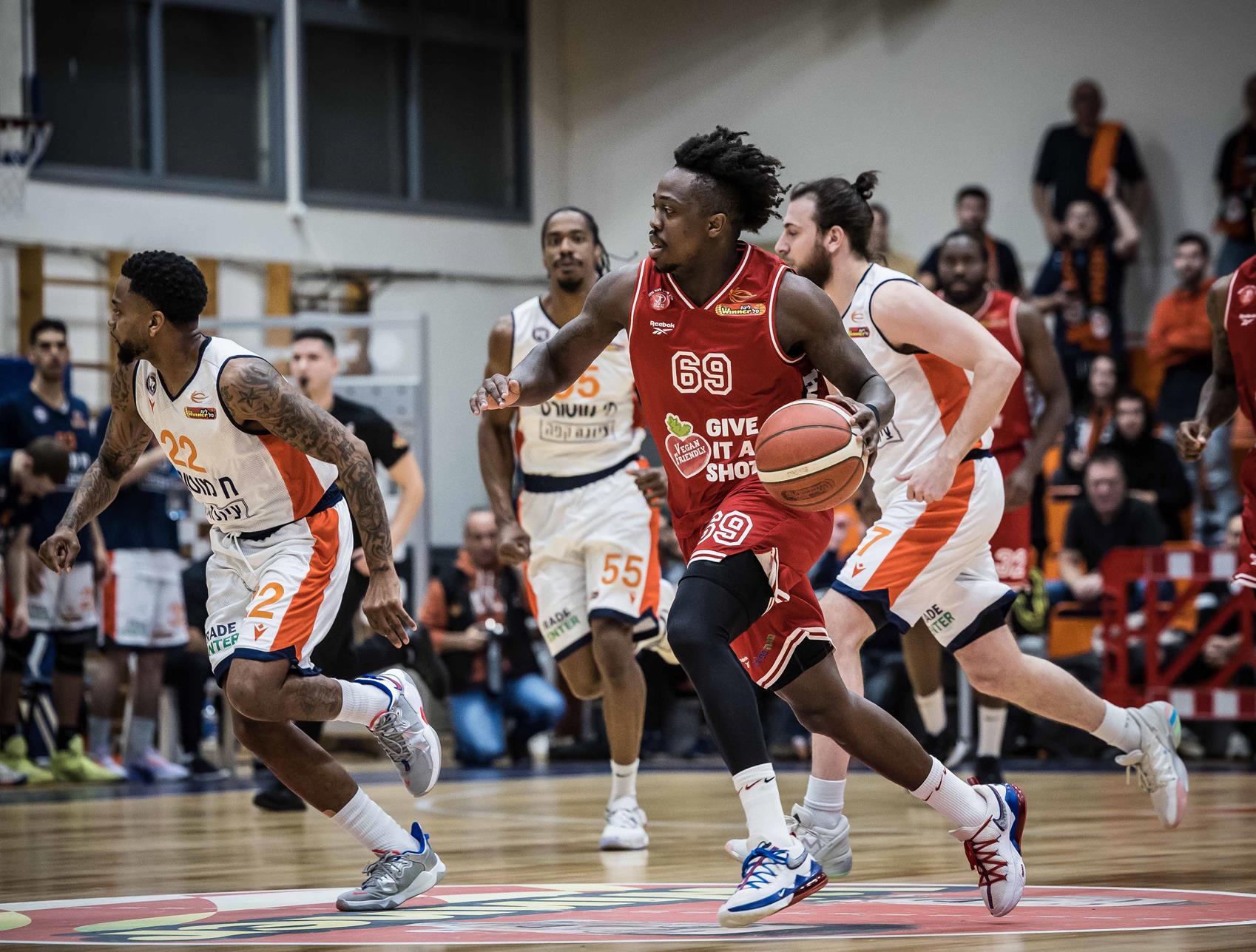 הפועל "Vegan Friendly" ת"א: מקריי 24 (6-9 לשתיים, 3-5 לשלוש, 3-4 מהקו), מנפורד 19 (4-7 לשלוש, 2-5 לשתיים,3-6 מהקו, 5 אסיסטים), גינת 18 (5-12 לשתיים, 2-2 לשלוש, 5 אסיסטים), אונואקו 15 (6-11 מהשדה, 3-3 מהקו, 16 ריבאונדים, 5 אסיסטים, 3 הטבעות), טימור 10 (3-8 מהשדה, 6 ריבאונדים, 5 אסיסטים), בראון 9 (3-8 מהשדה, 6 אסיסטים, 3 חטיפות), הורד 4 (2-5 מהשדה), אריאל 3 (1-4 לשלוש). כן שותף: בני.