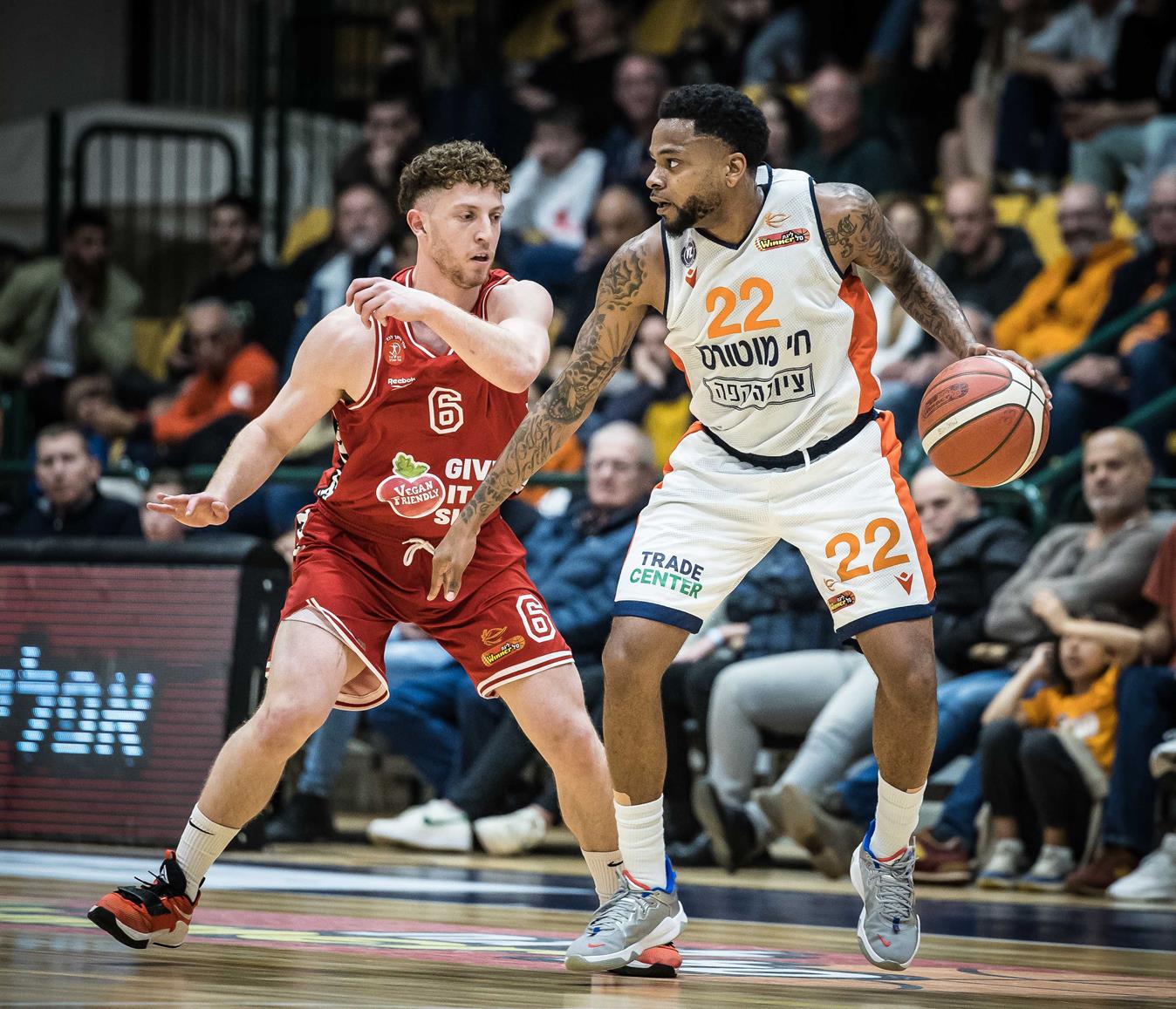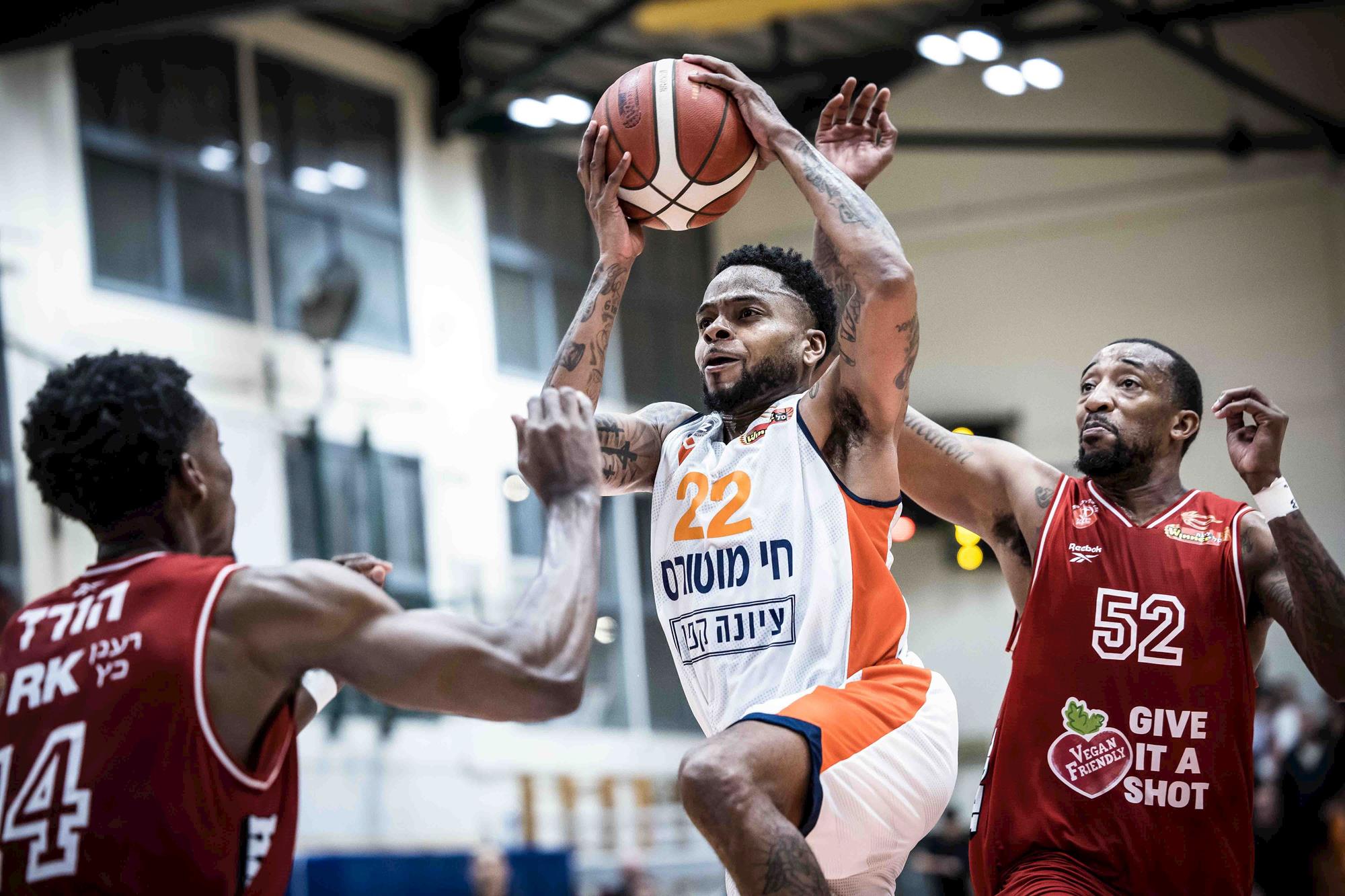 הפועל "Vegan Friendly" ת"א שרדה מותחן נוסף, הפעם בלב המושבה, ושמרה על המקום הראשון עם 97:102 על עירוני "חי מוטורס" נס ציונה (צילום: עודד קרני)