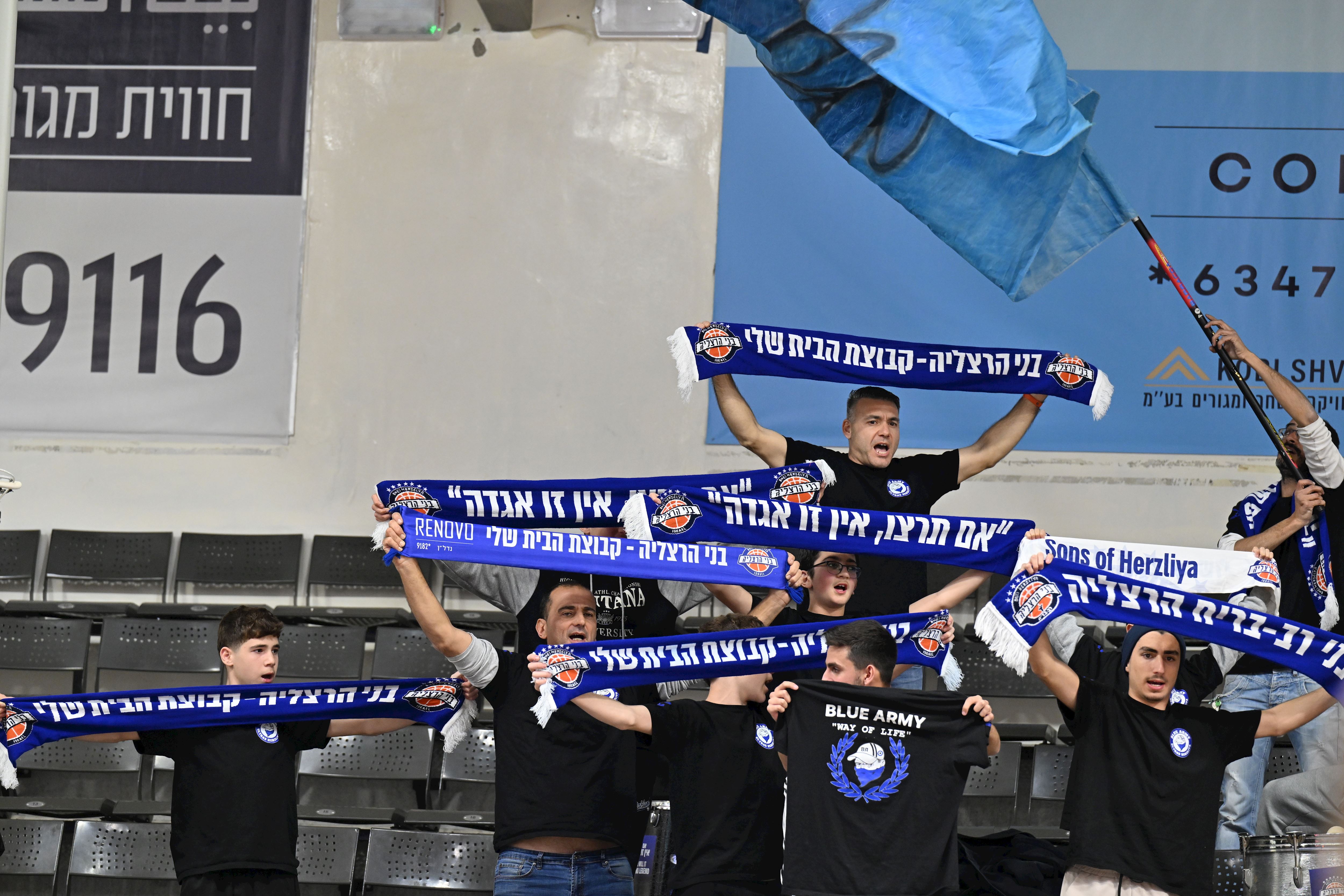 האוהדים ההרצליינים חוגגים בסיום (צילום: יוד צילומים)