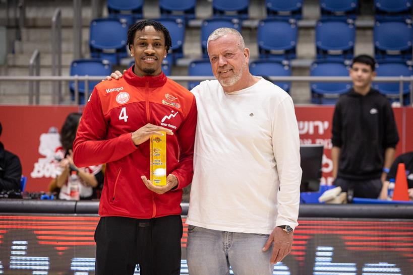 קולשוב מקבל מגן על הגעתו ל-1,000 נקודות ליגה (צילום: לירון מולדובן)