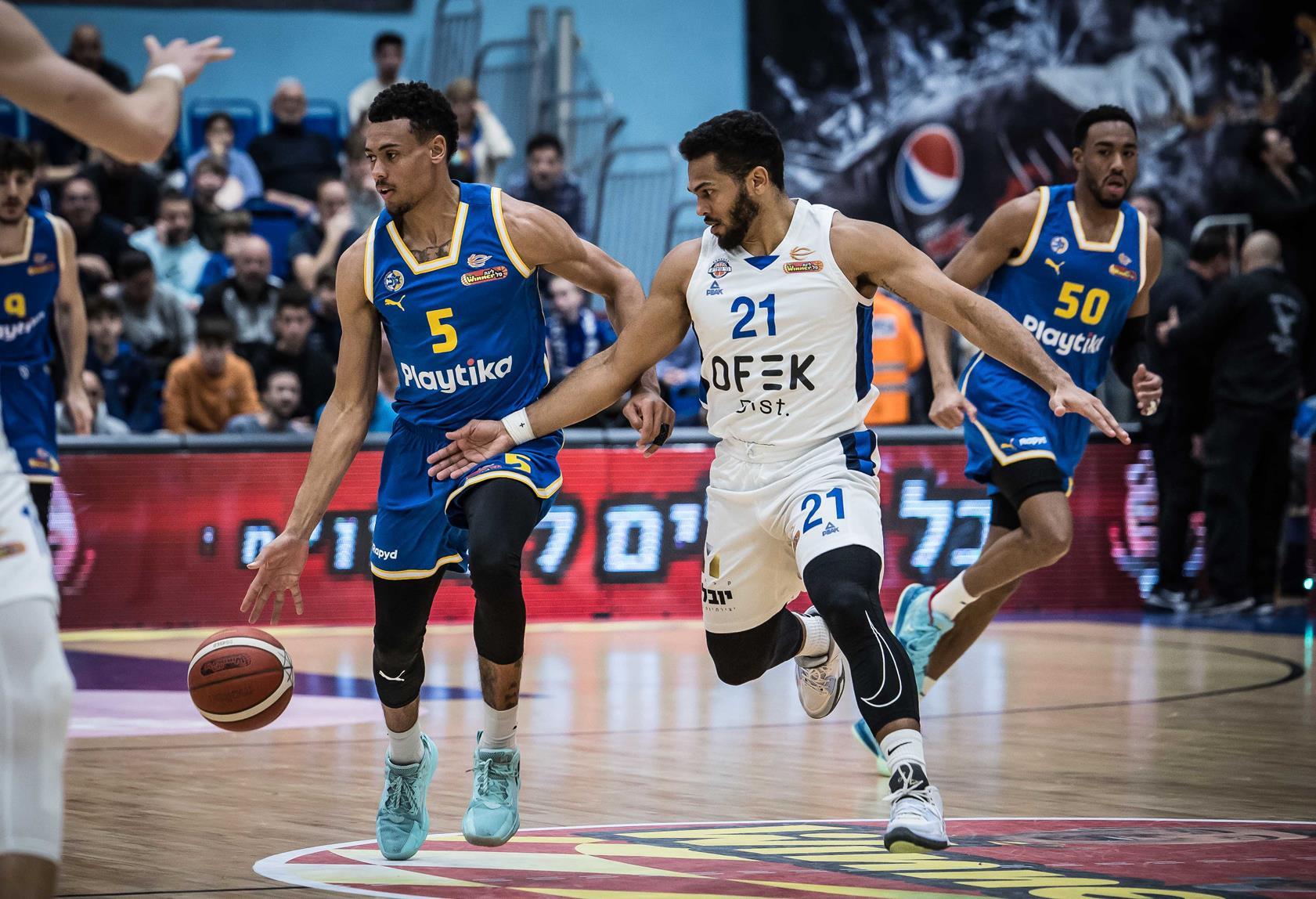 מכבי "Playtika" ת"א השאירה מאחוריה את ההפסד בגמר הגביע עם 76:99 משכנע בחוץ על בני "Ofek Dist" הרצליה. בונזי קולסון וג'ייק כהן בלטו (צילום: עודד קרני)