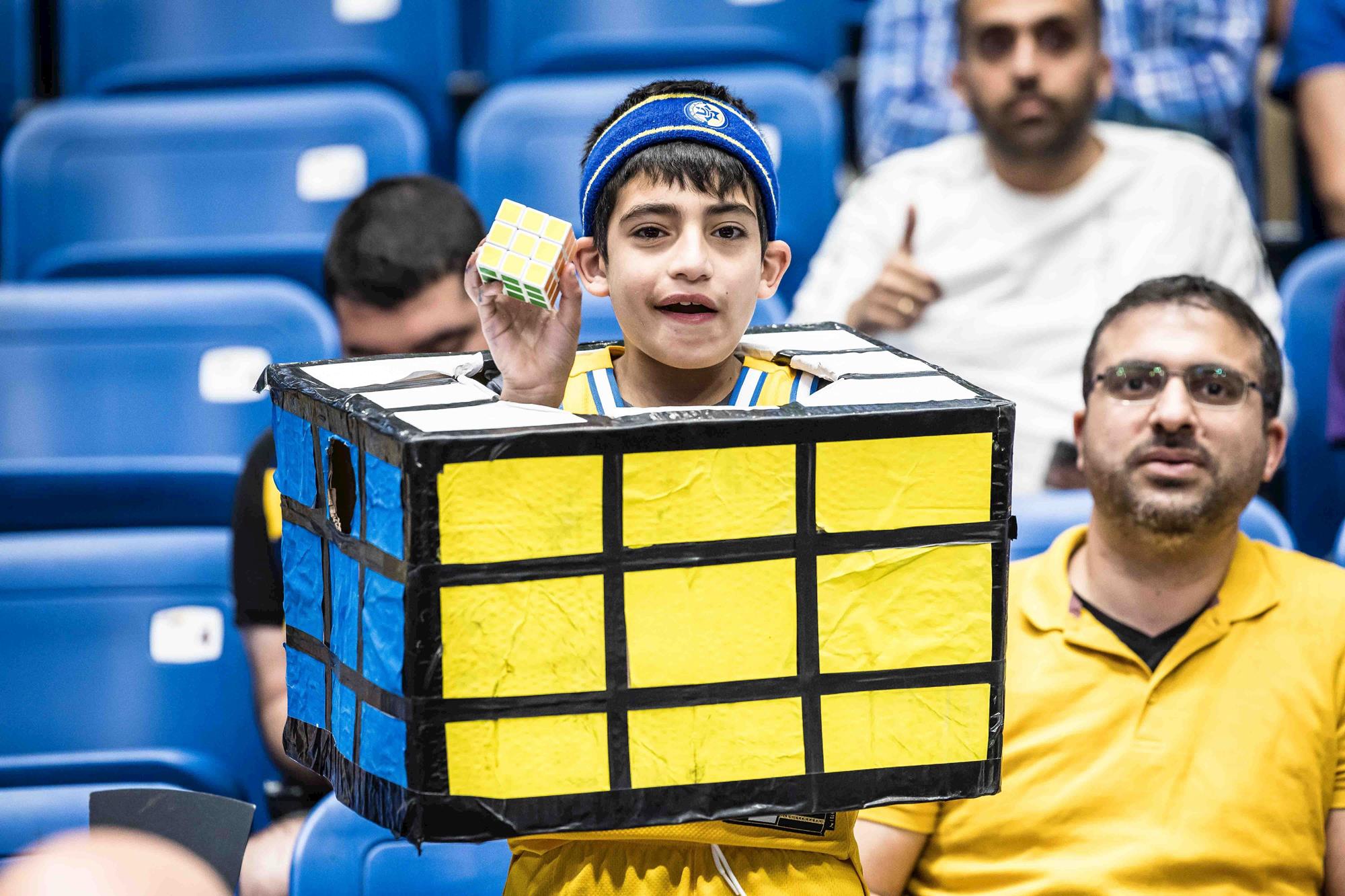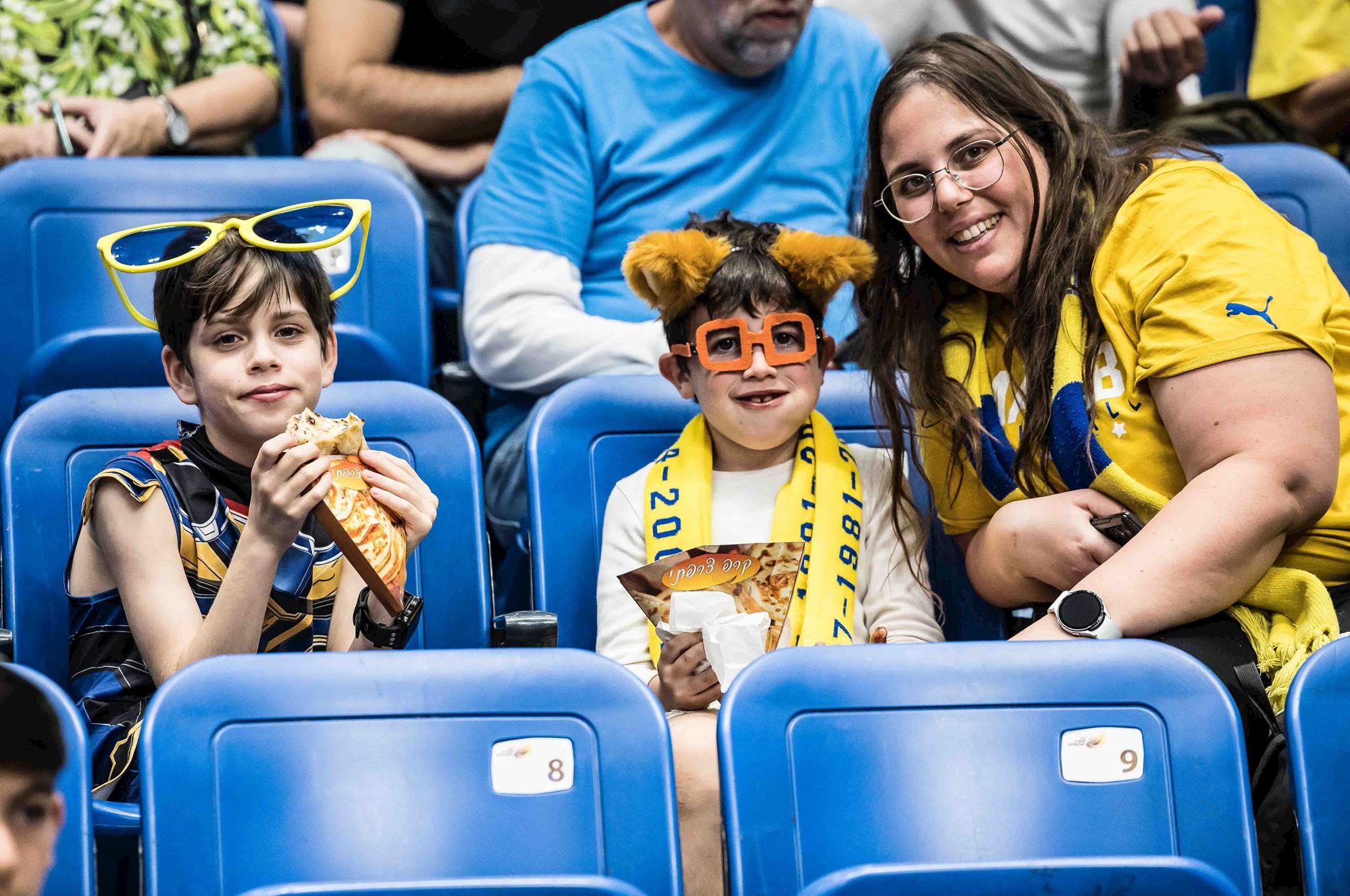 אווירה פורימית ביציעי היכל מנורה מבטחים (צילומים: עודד קרני)