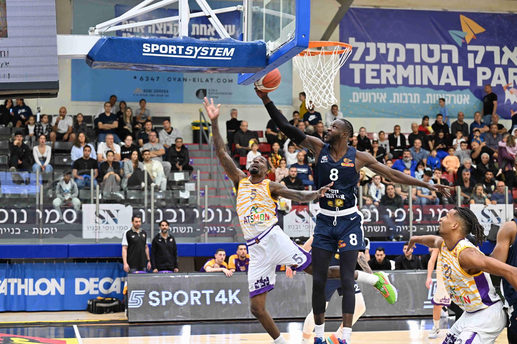 דאבל-דאבל מפלצתי של מנגוק מתיאנג הרחיק את הפועל "יוסי אברהמי" אילת מהקו האדום, אחרי 91:102 ביתי גדול על הפועל "עצמון" חולון (צילום: יוד צילומים)