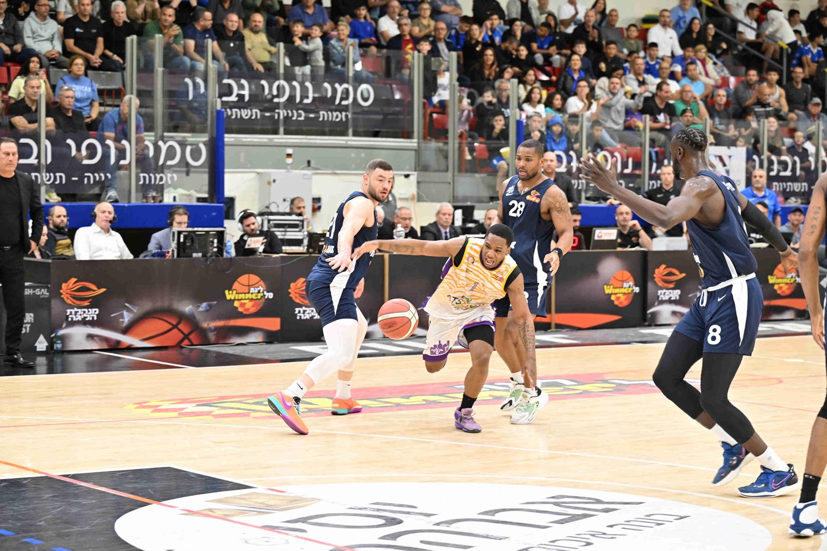 חולון מאבדת את המקום השלישי בטבלה, לאחר ערב בו רדפה לכל אורכו, בהפרש שהגיע בשיא ל-23 נקודות. מני האריס (28 נקודות בבכורה המחודשת בליגה) וסי.ג'יי האריס (21 נקודות ו-9 אסיסטים) החזירו את הסגולים-צהובים למינוס 5 בלבד ברבע הרביעי, אלא שחולון פיספסה יותר מדי הזדמנויות להתקרב עוד ולא הצליחה להשלים את הקאמבק. האלופה, שחסרה את שון דאוסון, כריס ג'ונסון ומרווין ג'ונס, תסיים בהמשך השבוע את העונה האירופית במשחק בית מול דיז'ון.