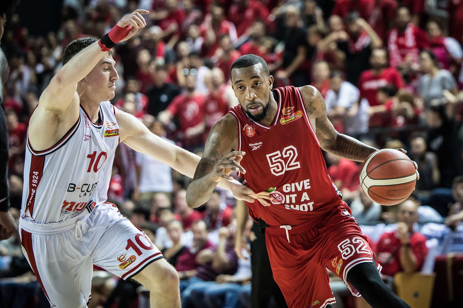 ג'ונס עולה לקליעה מחצי מרחק (צילום: עודד קרני)