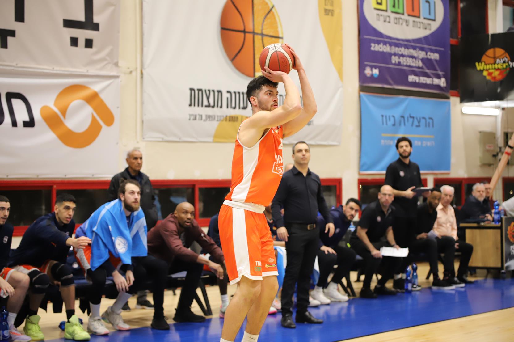לוינסון עולה לשלשה מהפינה (צילום: עמית סמיקט, עירוני נס ציונה)